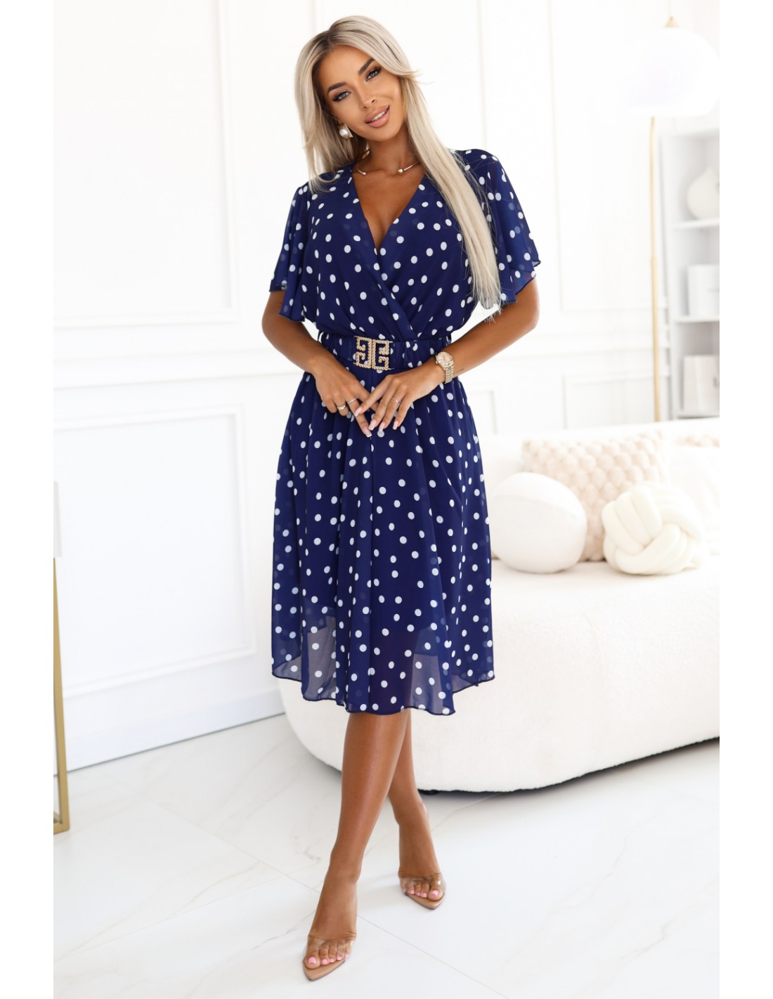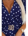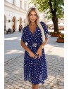 DM0832 Zwiewna sukienka w groszki z kopertowym dekoltem - granatowa