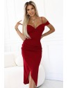 DM0962 Sukienka midi z odkrytymi ramionami - bordowa