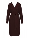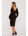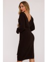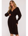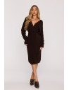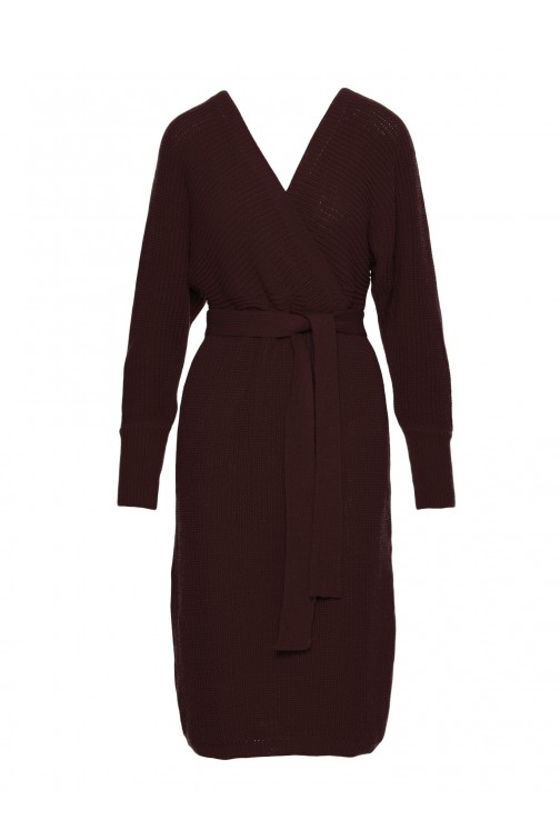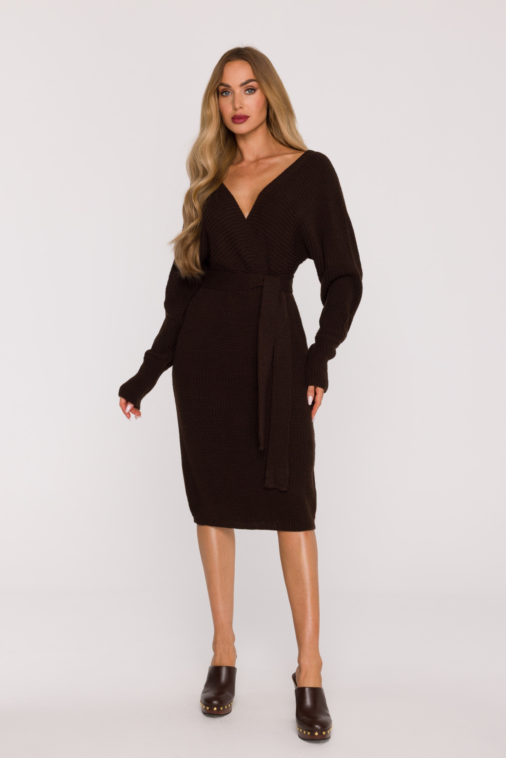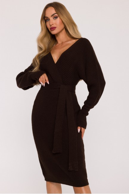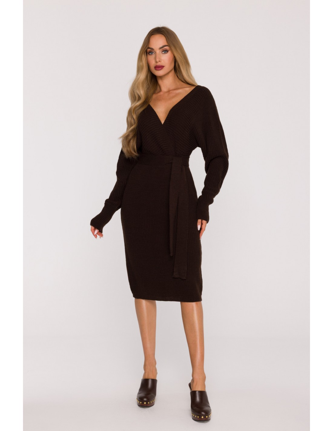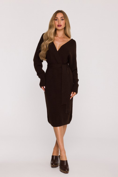DM1017 Sukienka swetrowa z dekoltem kopertowym i paskiem – brązowa