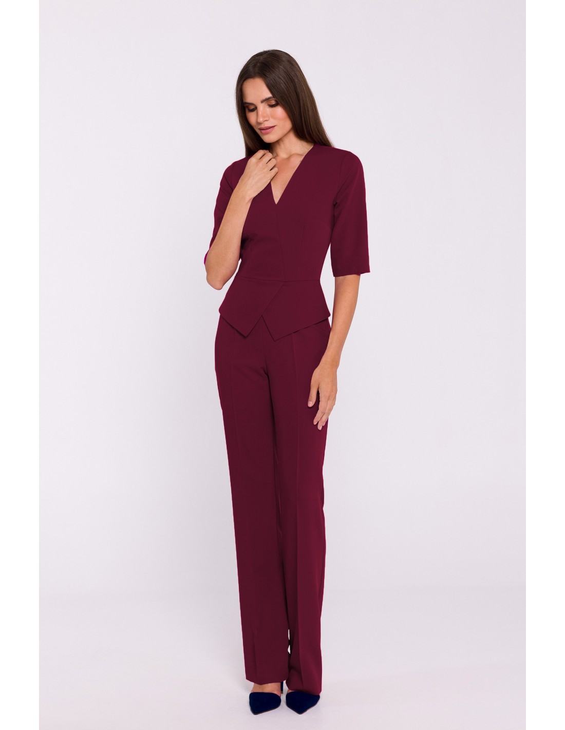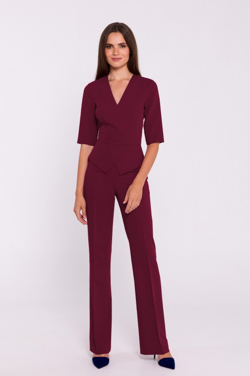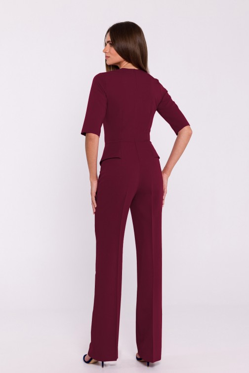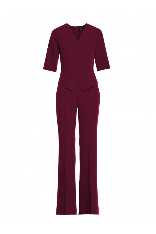 DM1026 Elegancki kombinezon damski z baskinką - bordowy