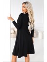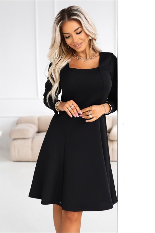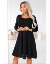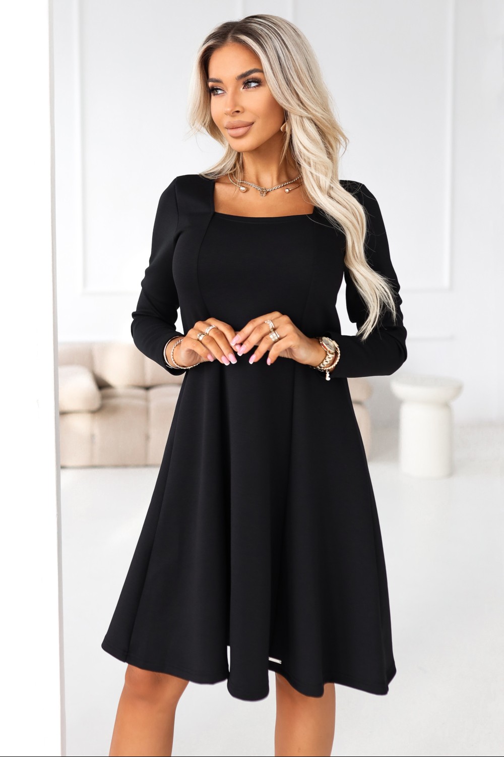 Wygodna trapezowa sukienka, wyróżniająca się prostym krojem z dekoltem i długimi rękawami. Uszyta z elastycznej, zielonej dzianiny, która doskonale dopasowuje się do sylwetki, zapewniając swobodę ruchów i komfort noszenia.