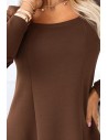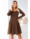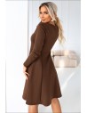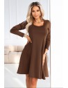DM1097 Trapezowa sukienka z długim rękawem - czekoladowa
