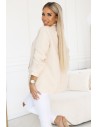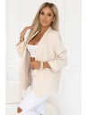 Elegancka i stylowa marynarka bez zapięcia to doskonały wybór do codziennych i biznesowych stylizacji. Wykonana z gładkiego materiału, posiada podszewkę oraz poduszki na ramionach, które nadają jej perfekcyjny kształt. Drapowane rękawy dodają lekkości i nowoczesnego charakteru. Kieszonki atrapy podkreślają minimalistyczny design.