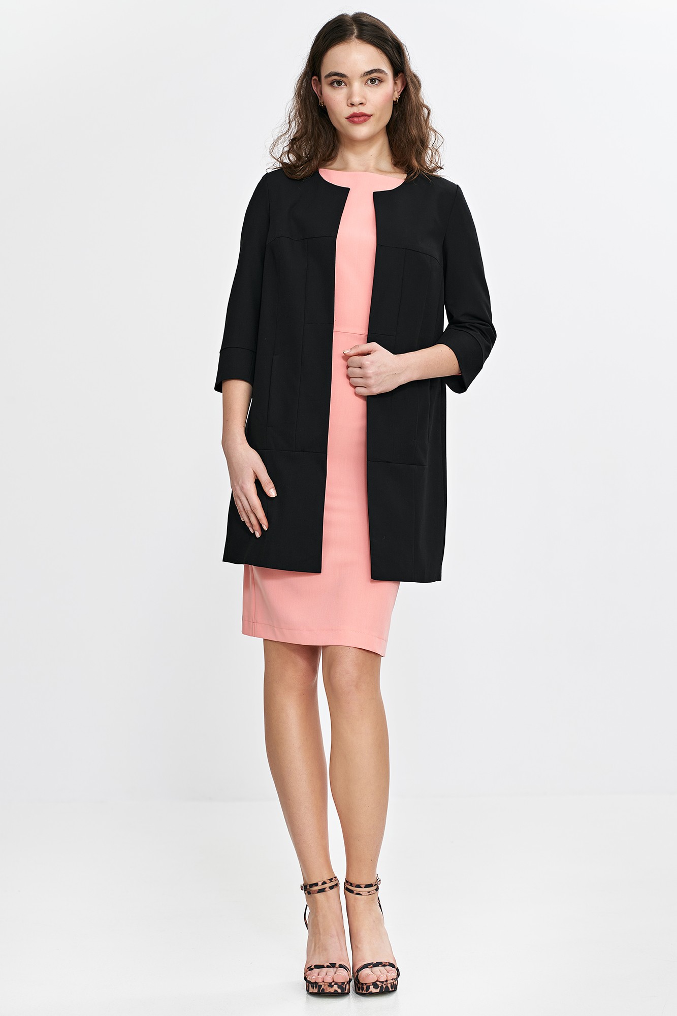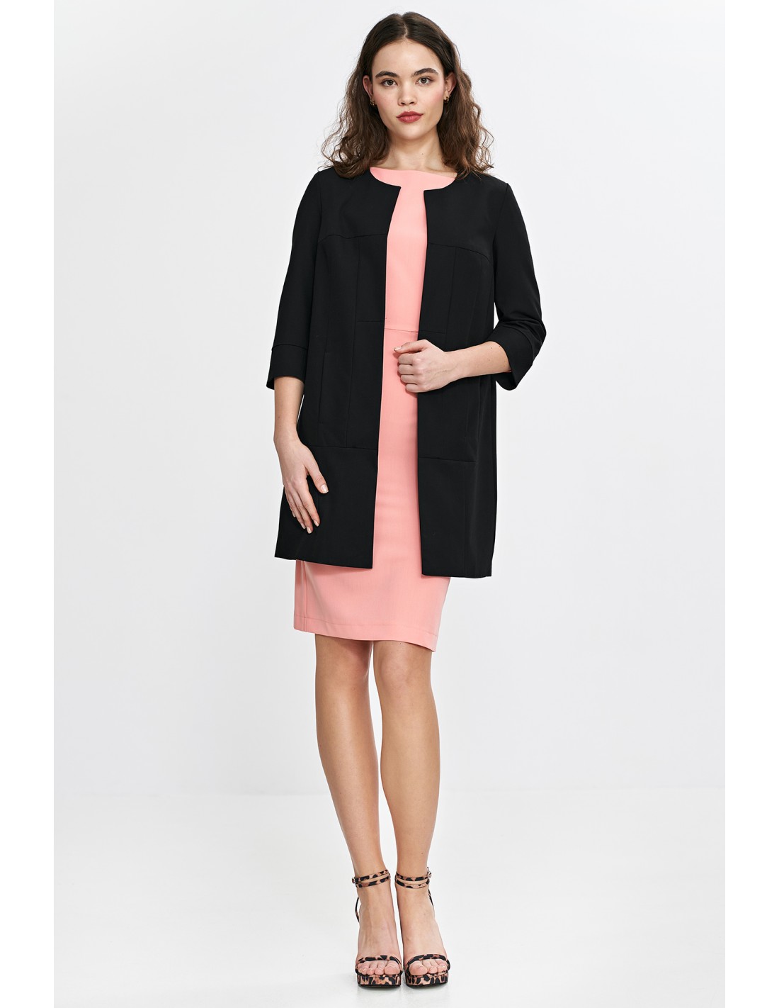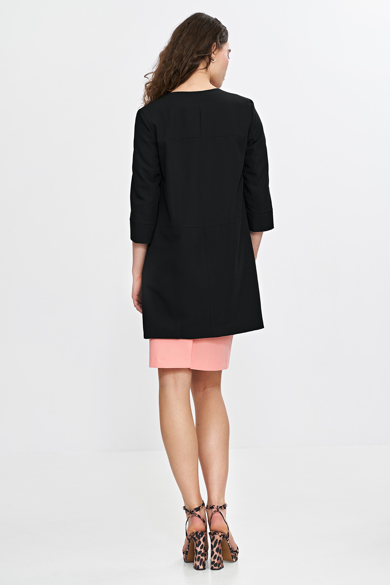 Czarna marynarka to nie tylko element garderoby – to manifest pewności siebie i subtelnej elegancji. Jej przedłużony krój z ozdobnymi przeszyciami oraz rękawami 3/4 nadaje sylwetce lekkości i nowoczesnego charakteru. Brak zapięcia podkreśla swobodę stylizacji, pozwalając na kreatywne łączenie z różnorodnymi elementami garderoby. Marynarka doskonale sprawdzi się zarówno w formalnych, jak i codziennych stylizacjach. Jej uniwersalny fason pozwala na zestawienie z eleganckimi spodniami, ołówkową spódnicą, a także z jeansami czy letnią sukienką. Zaprojektowana i uszyta w Polsce.