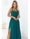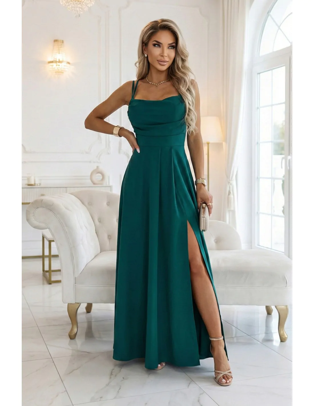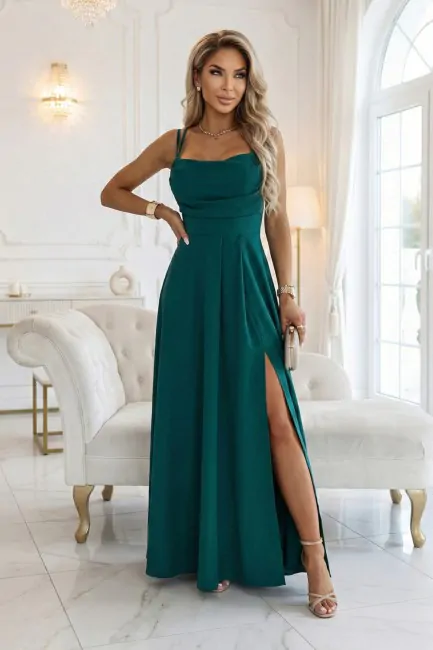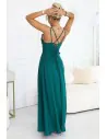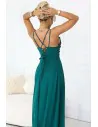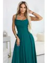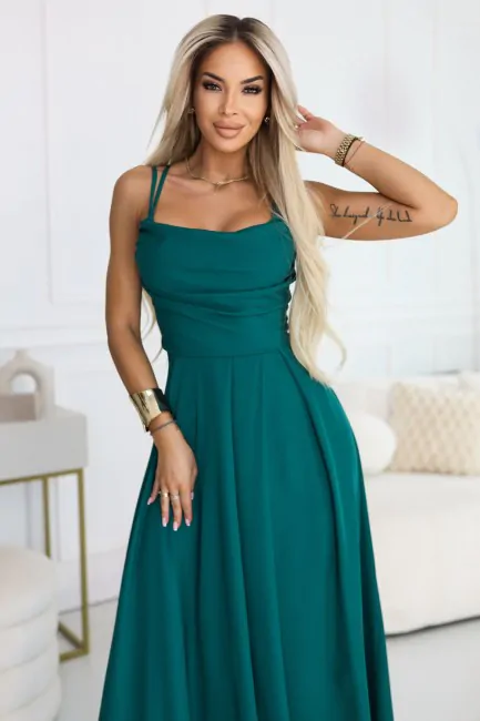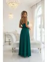 DM1265 Długa sukienka z gorsetowym wiązaniem na plecach - butelkowa zieleń