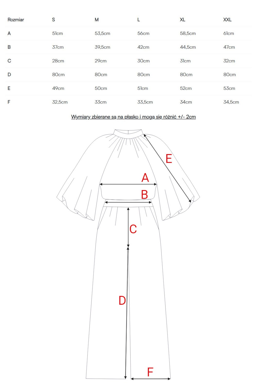• góra marszczona z szerokimi, kimonowymi rękawami