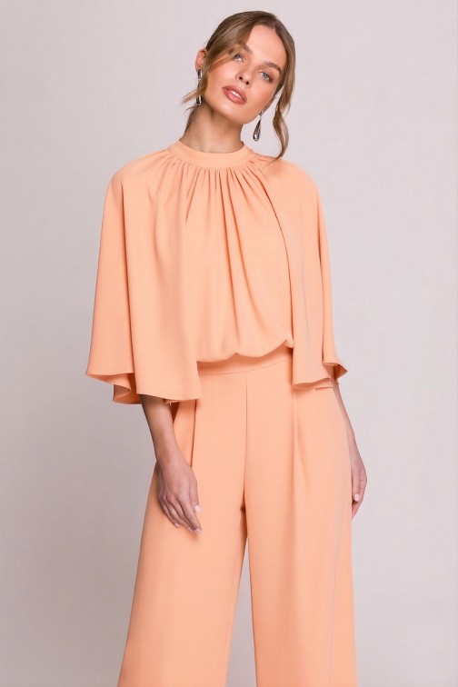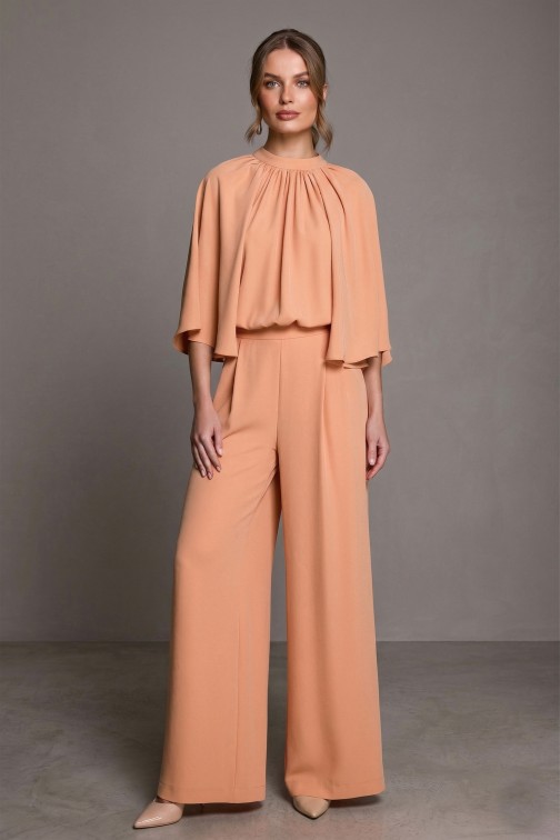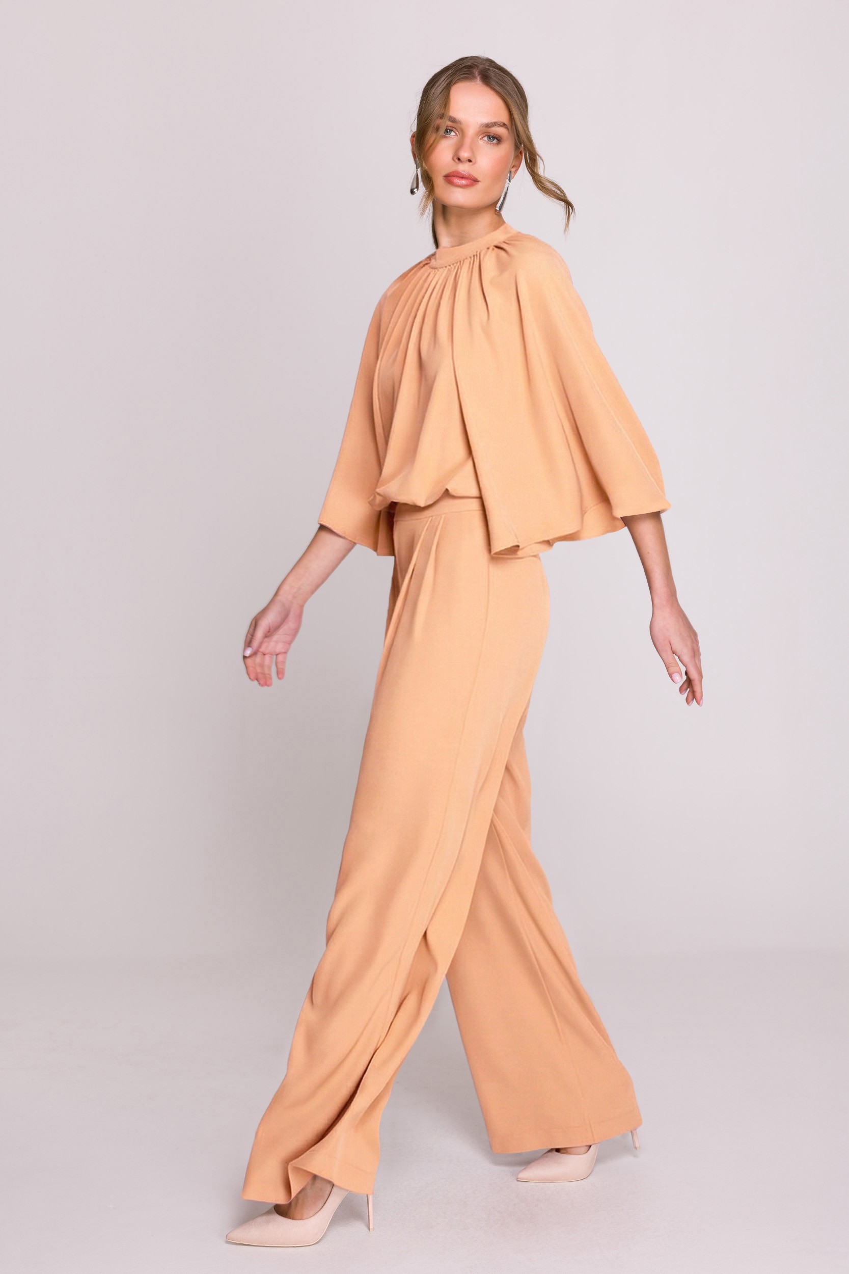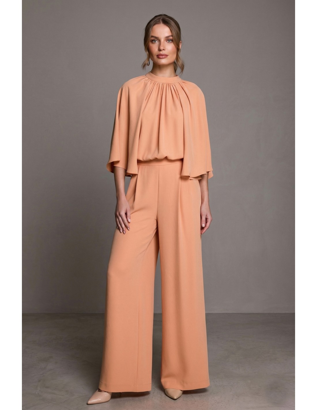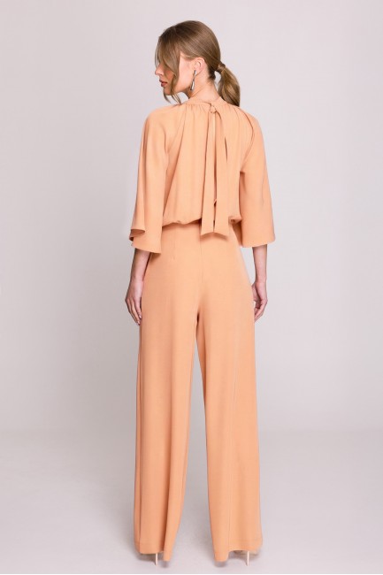 Kombinezon z szerokimi rękawami i wiązaniem z tyłu - brzoskwiniowy