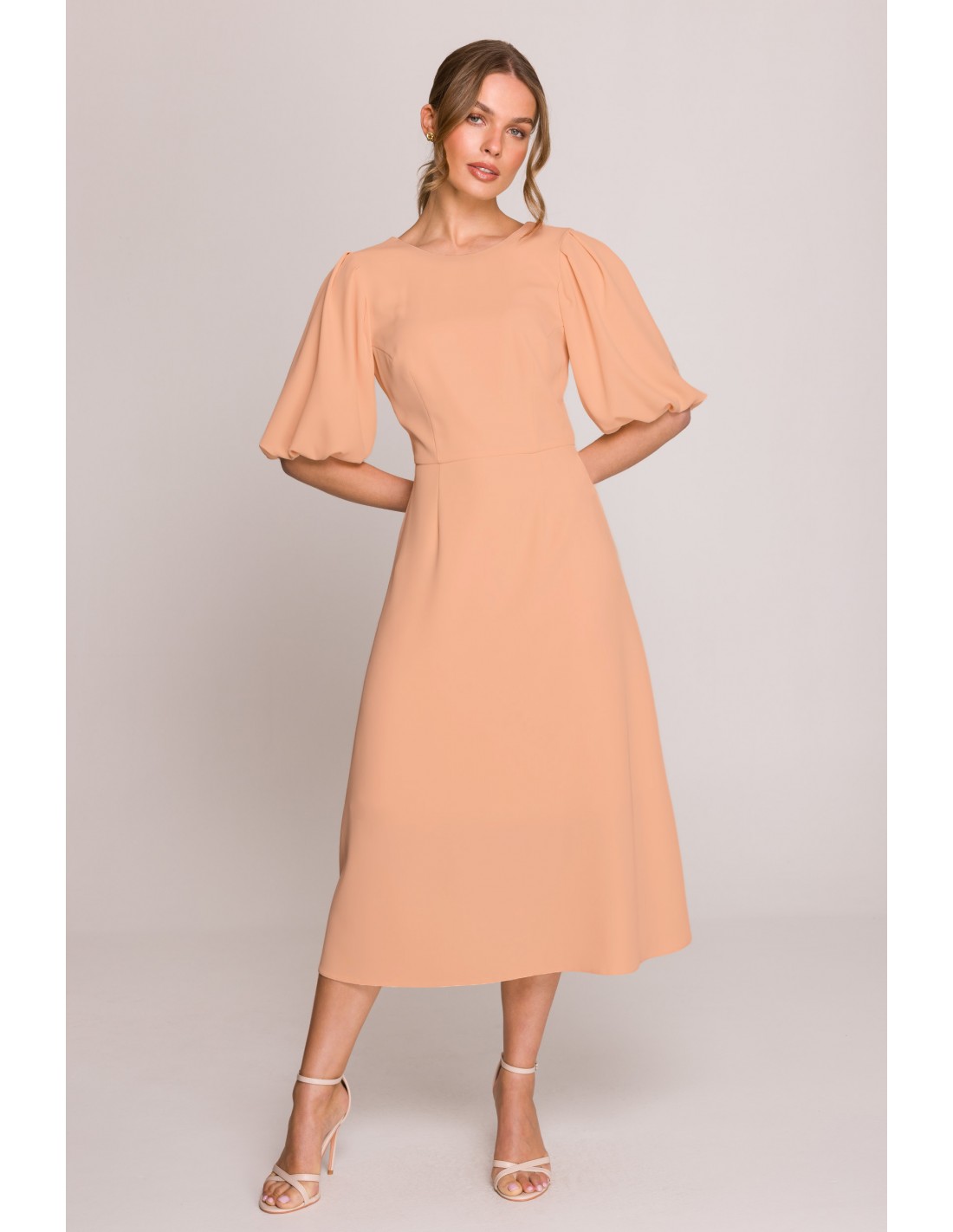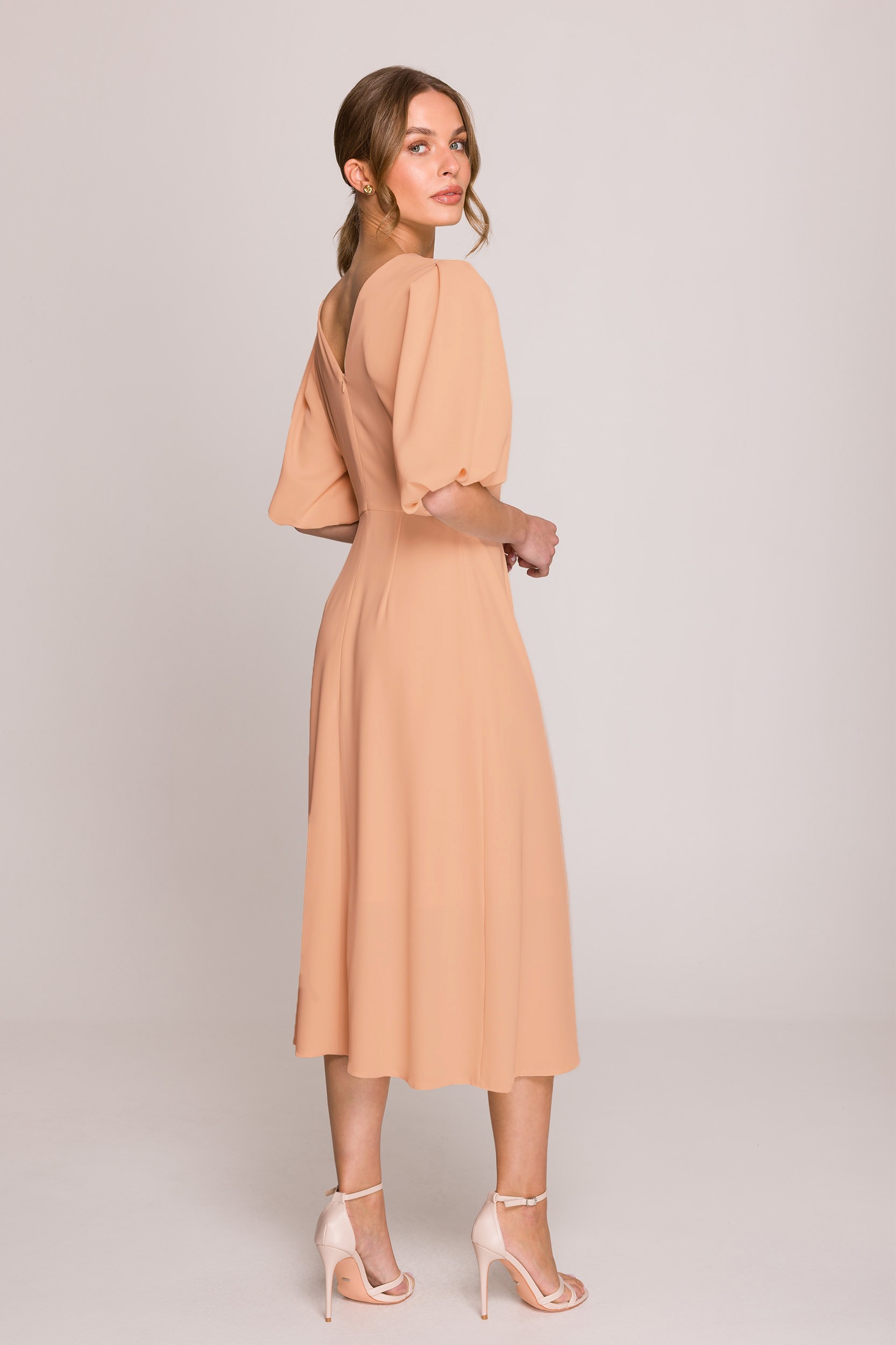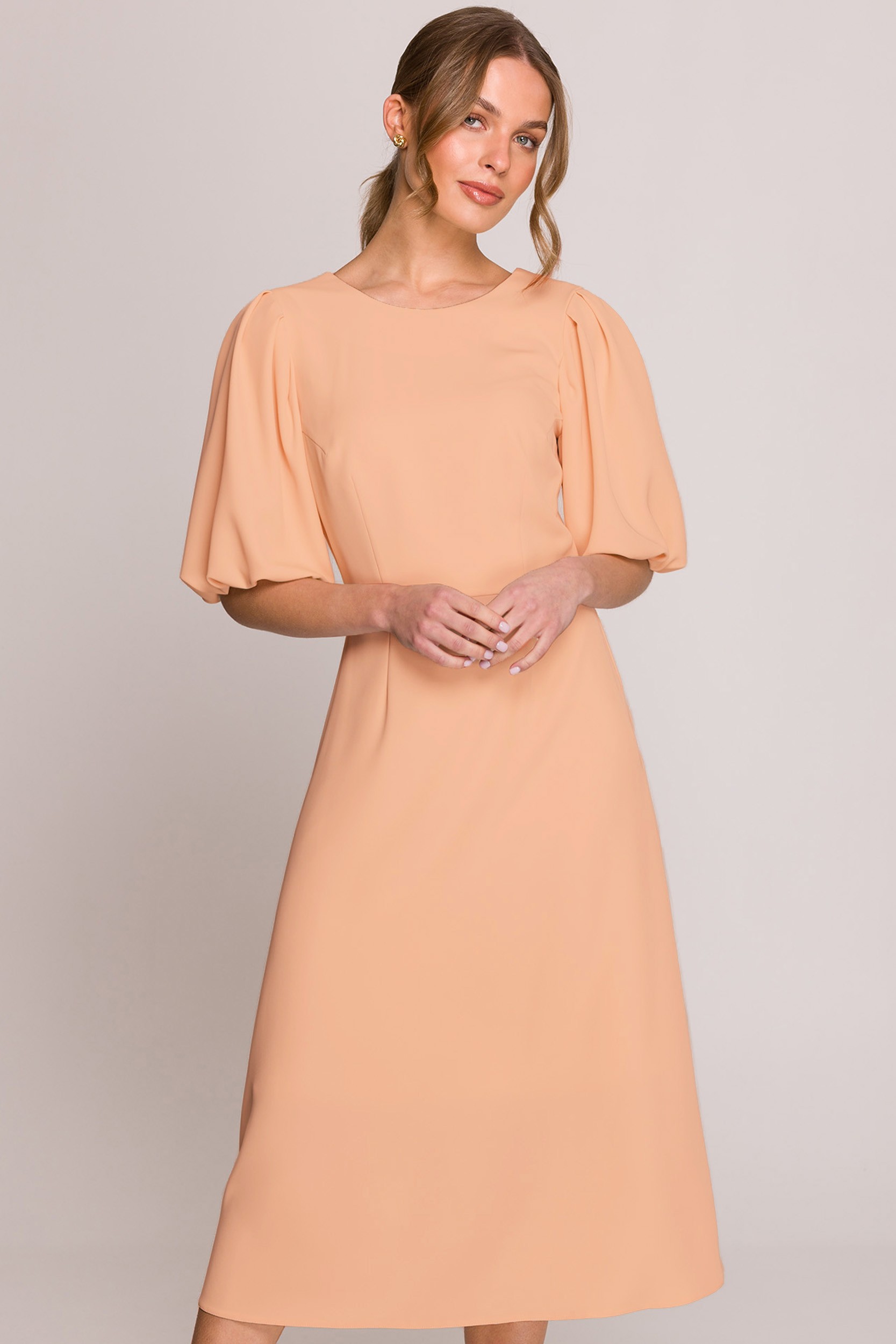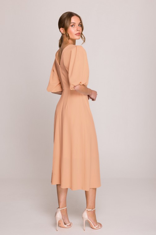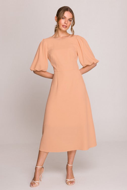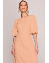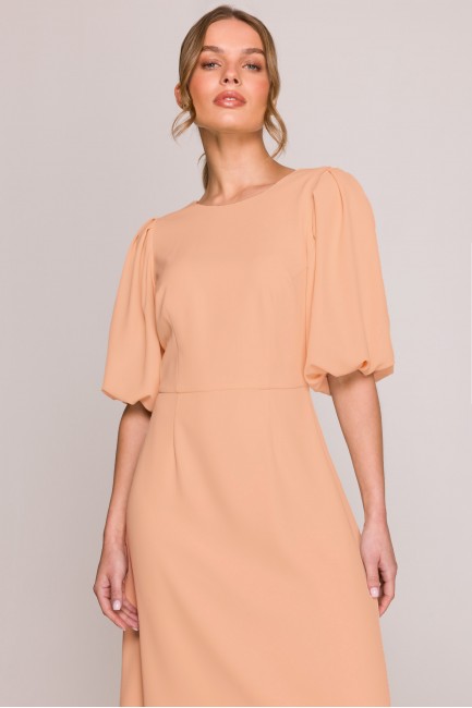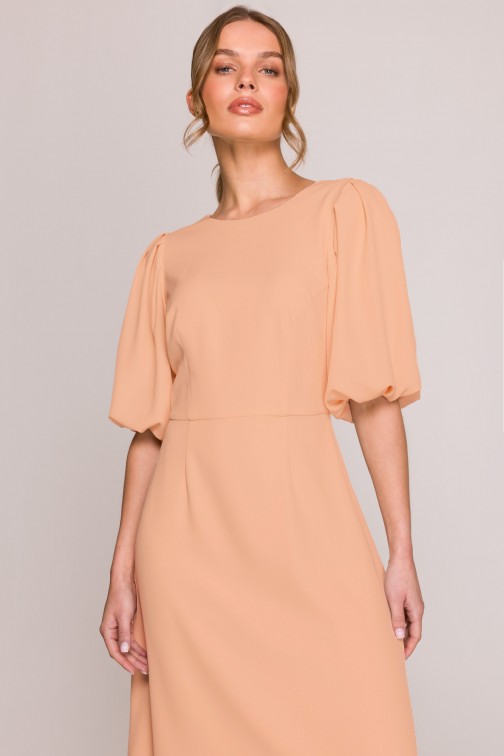 Sukienka z bufiastymi rękawami - brzoskwiniowa