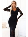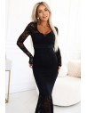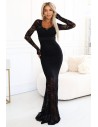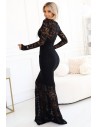 DM1372 Wieczorowa sukienka maxi koronkowa z długim rękawem - czarna