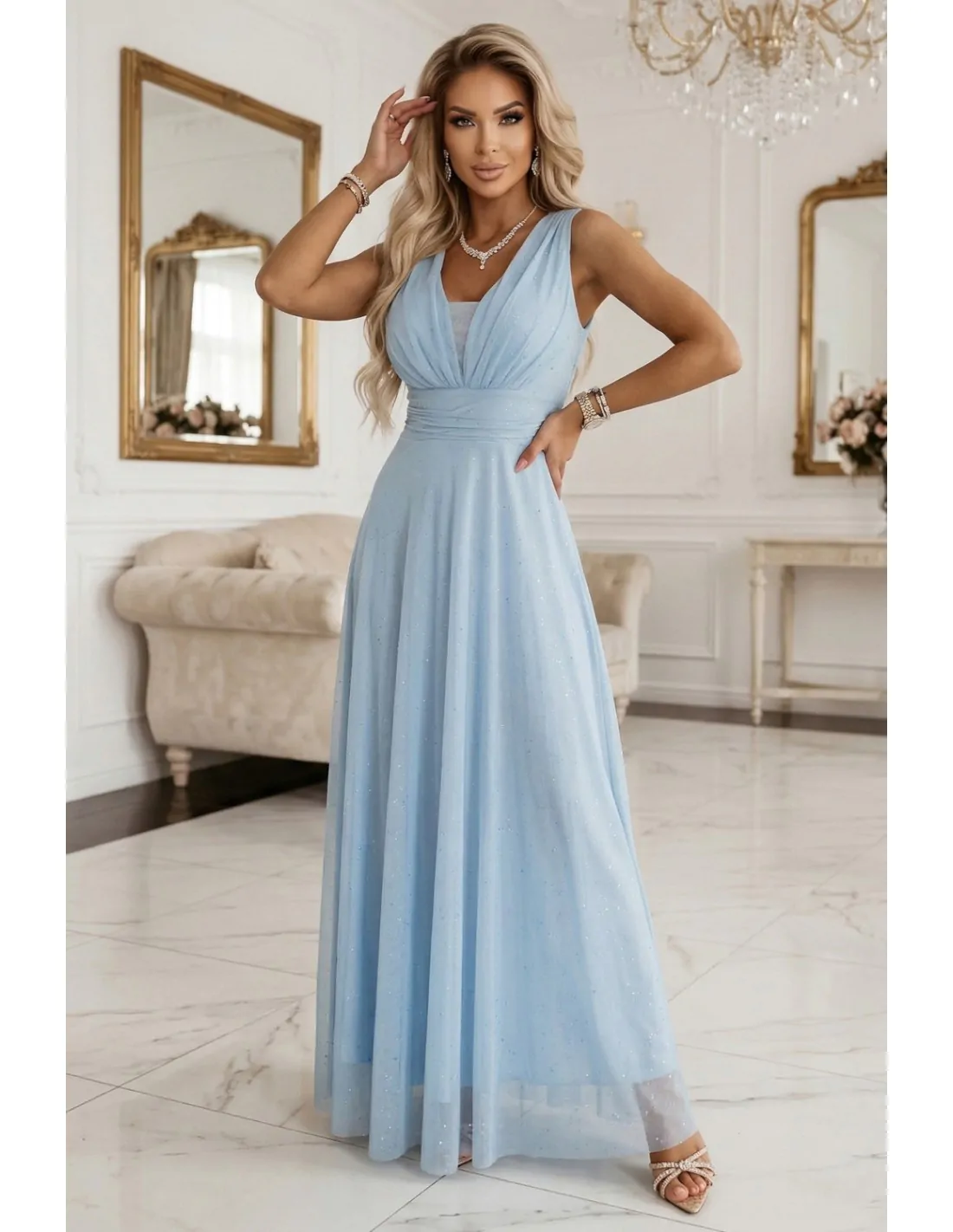 DM1402 Elegancka sukienka wieczorowa maxi - błękitna