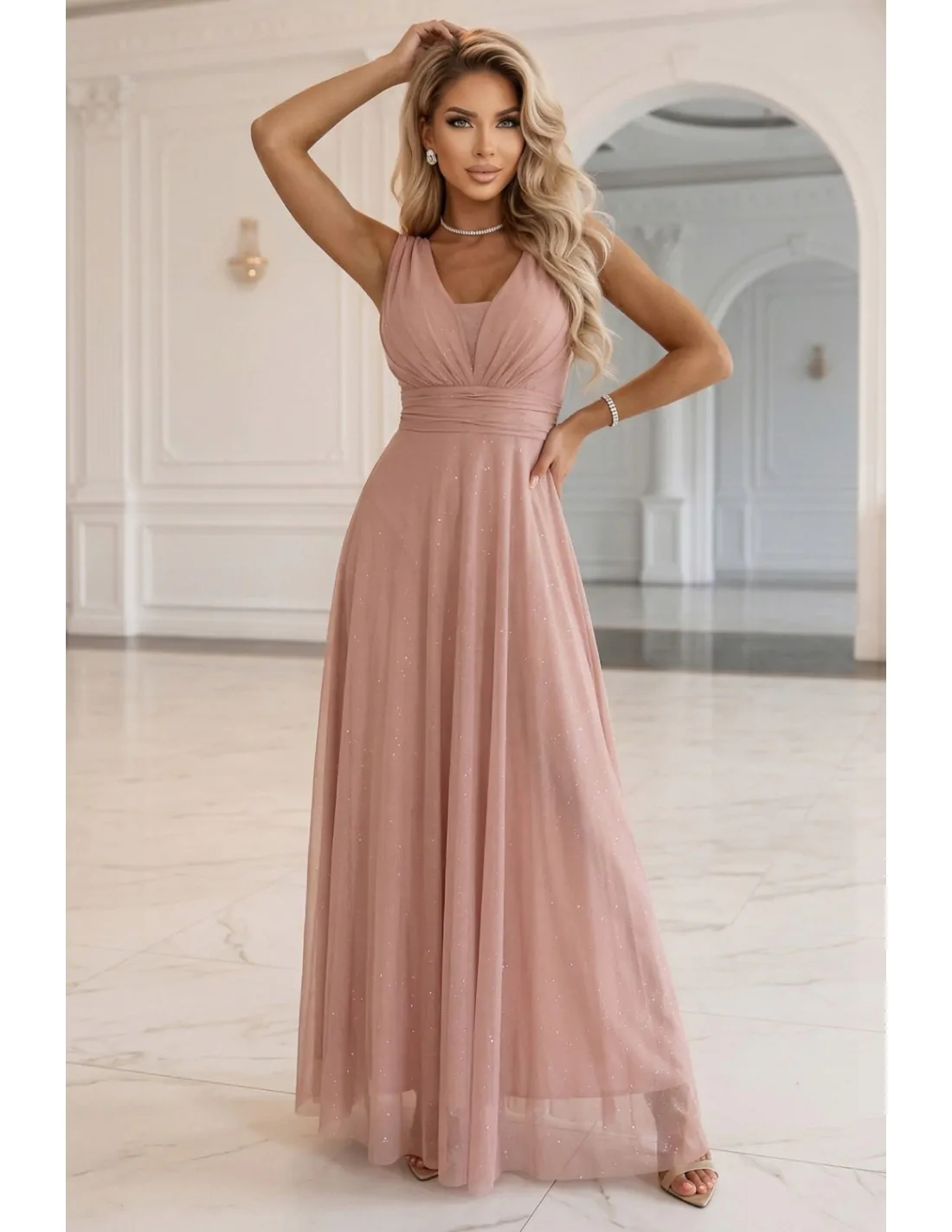 DM1402 Elegancka sukienka wieczorowa maxi - pudrowa