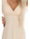 Elegancka sukienka maxi z dekoltem V - beżowa