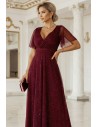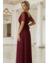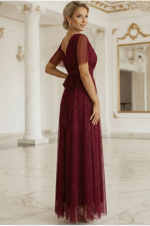 DM1404 Elegancka sukienka maxi z dekoltem V - bordowa