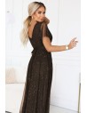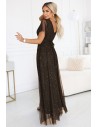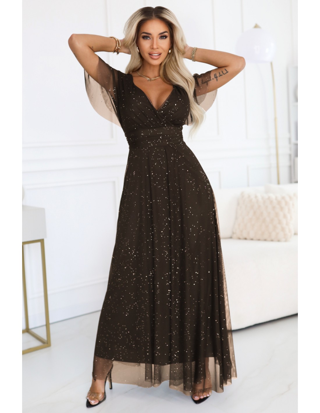 DM1404 Elegancka sukienka maxi z dekoltem V - czekoladowa