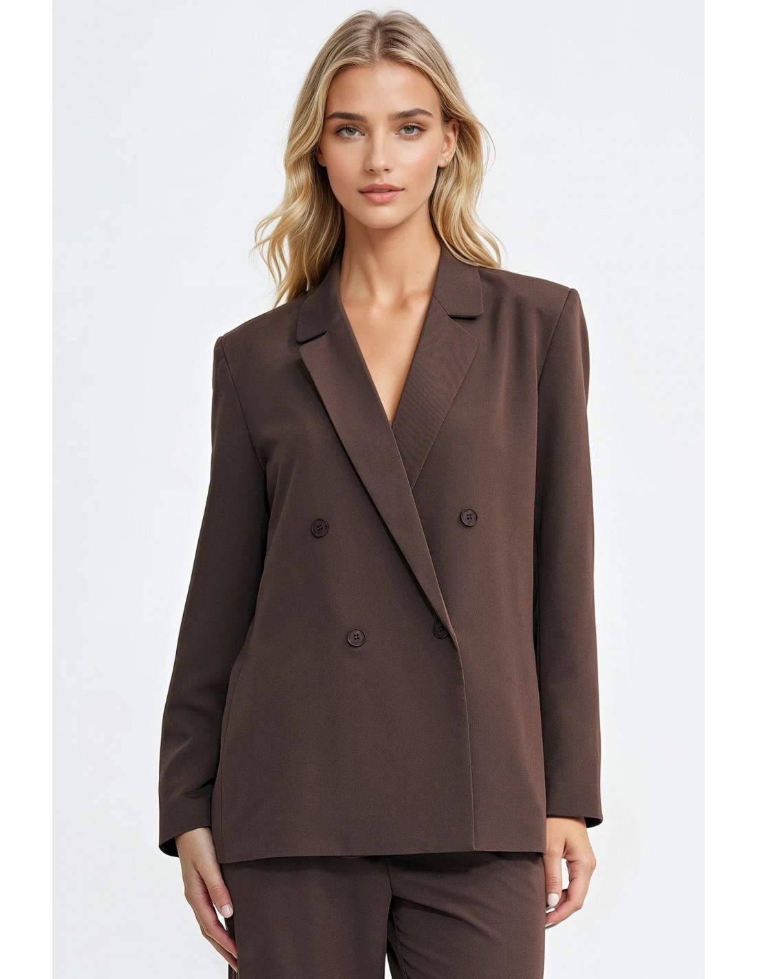 DM1408 Dwurzędowa marynarka oversize z kołnierzem - brązowa