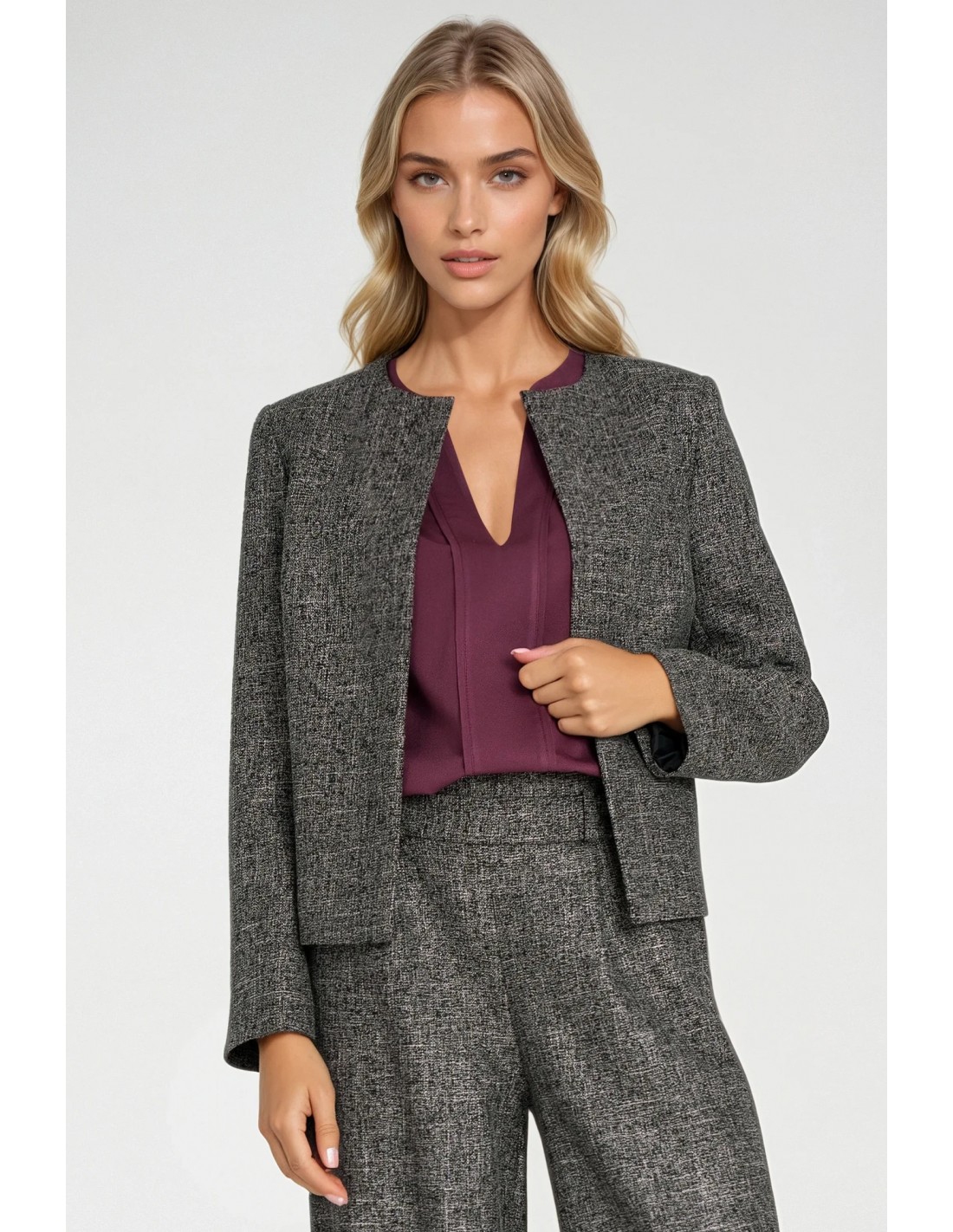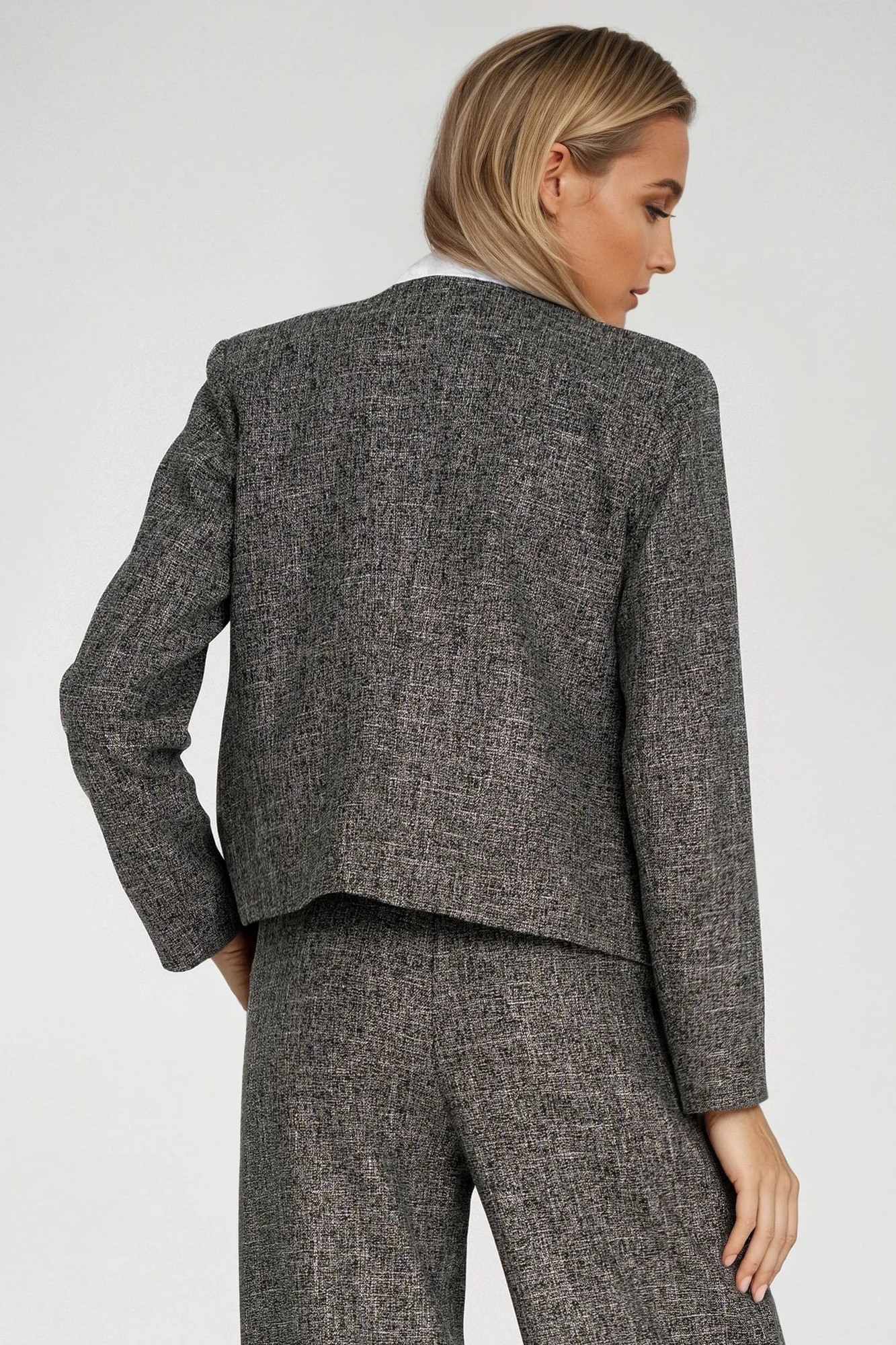 Żakiet typu chanel to klasyczna i elegancka propozycja, która łączy kobiecy szyk z uniwersalnością stylu. Prosty krój z miękką konstrukcją oraz faktura materiału nadają mu charakteru i delikatności. Model z kołnierzem bez klap oraz subtelnym zapięciem dodaje lekkości, a praktyczne kieszenie z przodu dopełniają wygląd, sprawiając, że żakiet świetnie sprawdzi się w zestawach biznesowych i casualowych. Zaprojektowano i uszyto w Polsce.