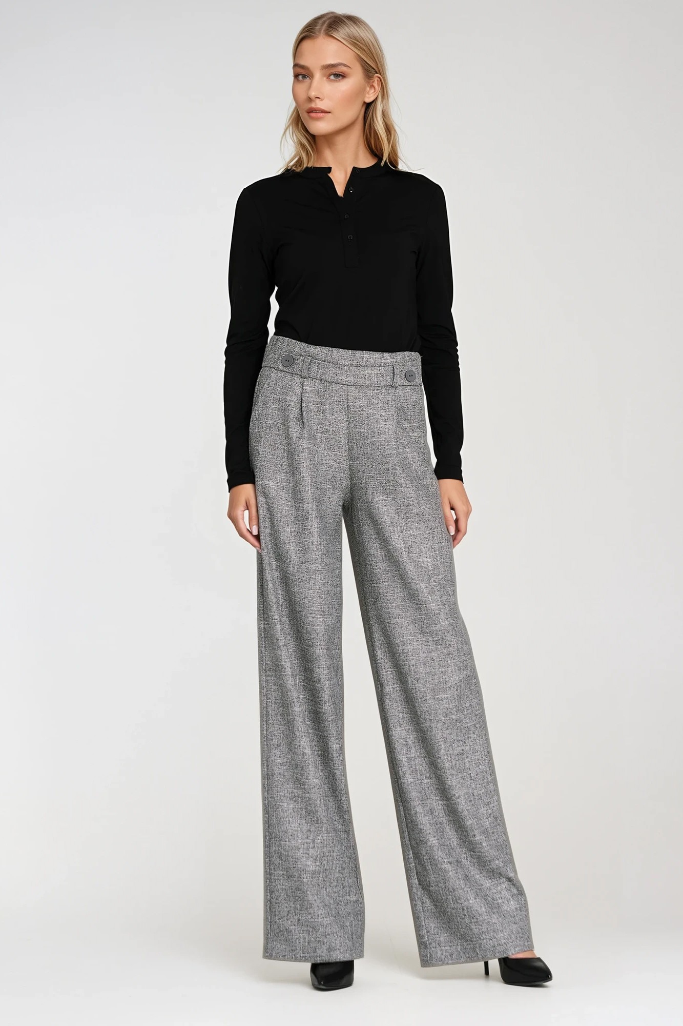 DM1414 Spodnie wide leg z gumą w pasie i guzikami - szare
