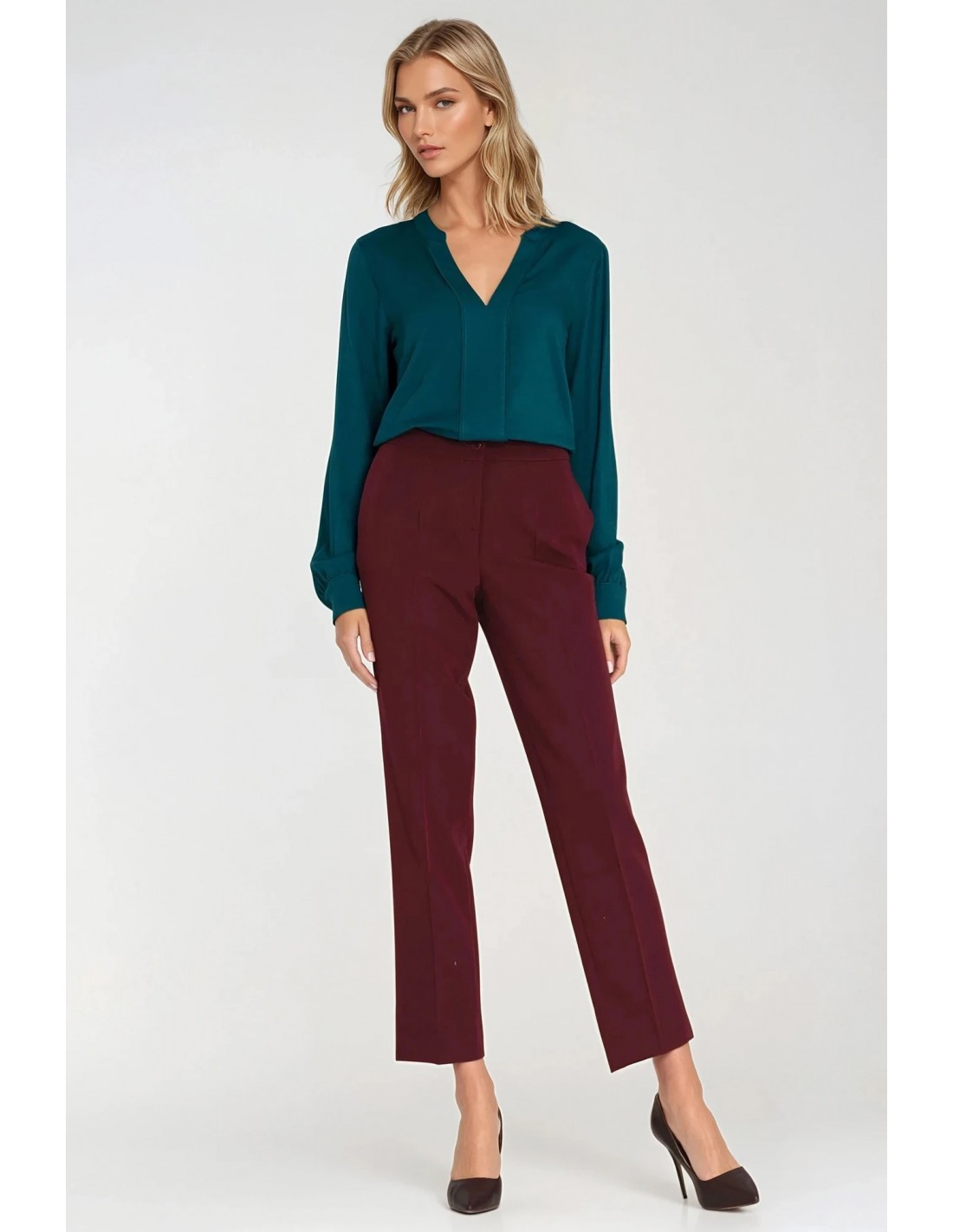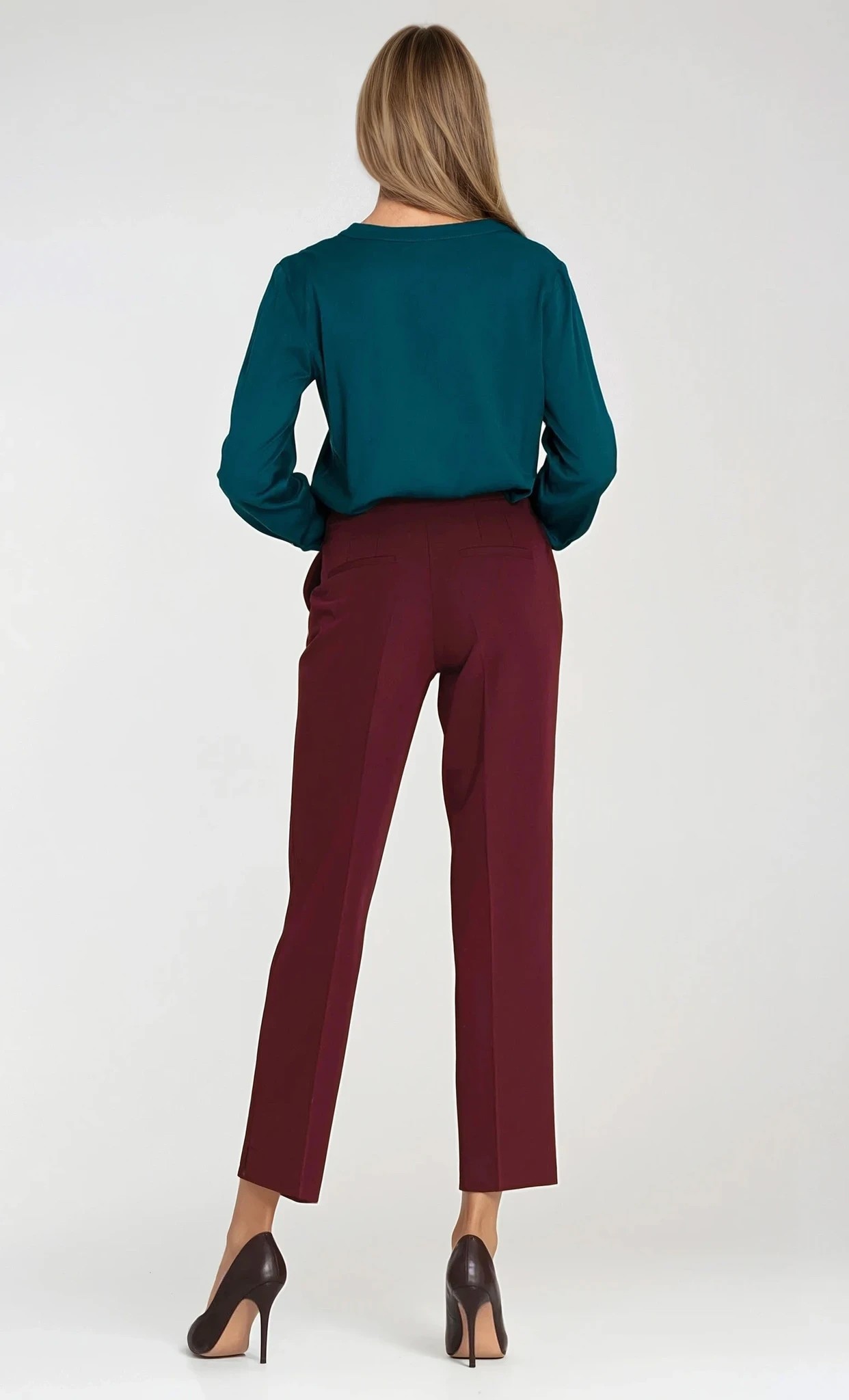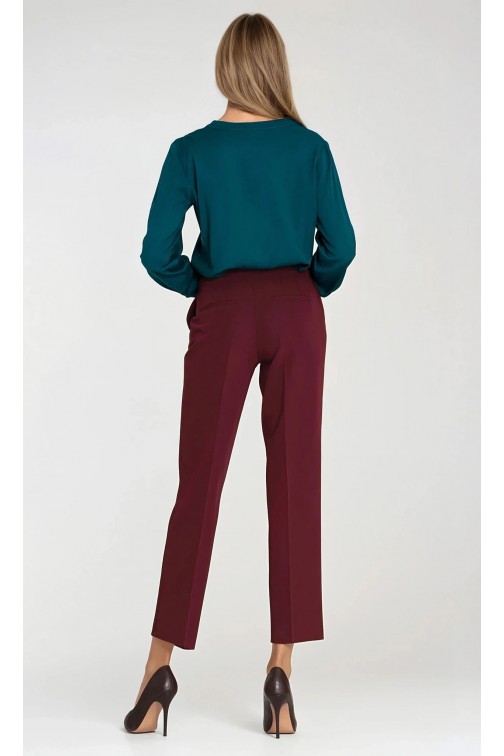 DM1415 Eleganckie dopasowane spodnie o długości 7/8 - bordowe