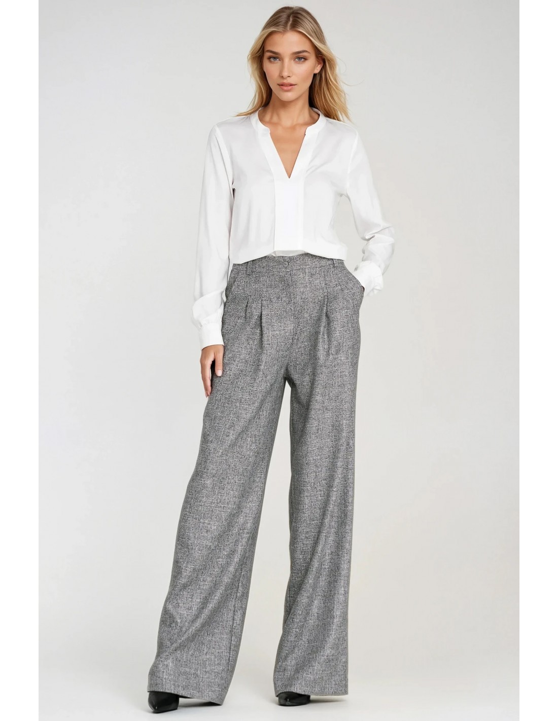 DM1416 Spodnie wide leg z wysokim stanem - szare