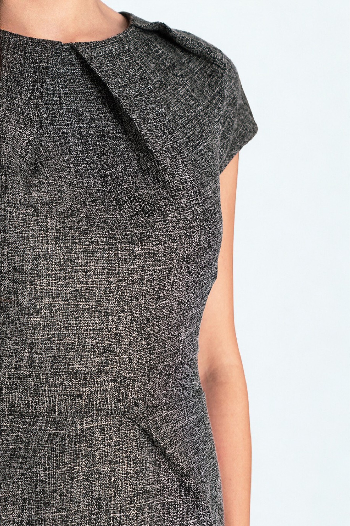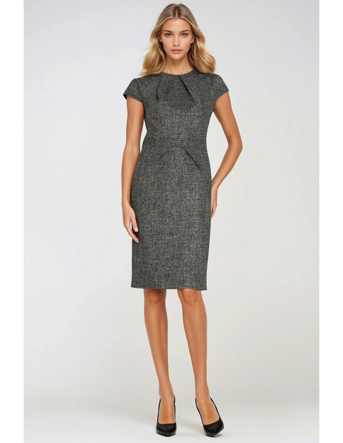 Sukienka z zakładkami na dekolcie to elegancka propozycja dla kobiet, które cenią klasyczny styl z nowoczesnym akcentem. Dopasowany krój podkreśla sylwetkę, a subtelne zakładki przy dekolcie dodają jej charakteru. Krótkie rękawy oraz długość midi sprawiają, że sukienka jest idealna na różne okazje – od spotkań biznesowych po wieczorne wyjścia. Zapinana z tyłu na suwak, uszyta z wysokiej jakości materiału, zapewnia komfort noszenia przez cały dzień. Zaprojektowano i uszyto w Polsce.