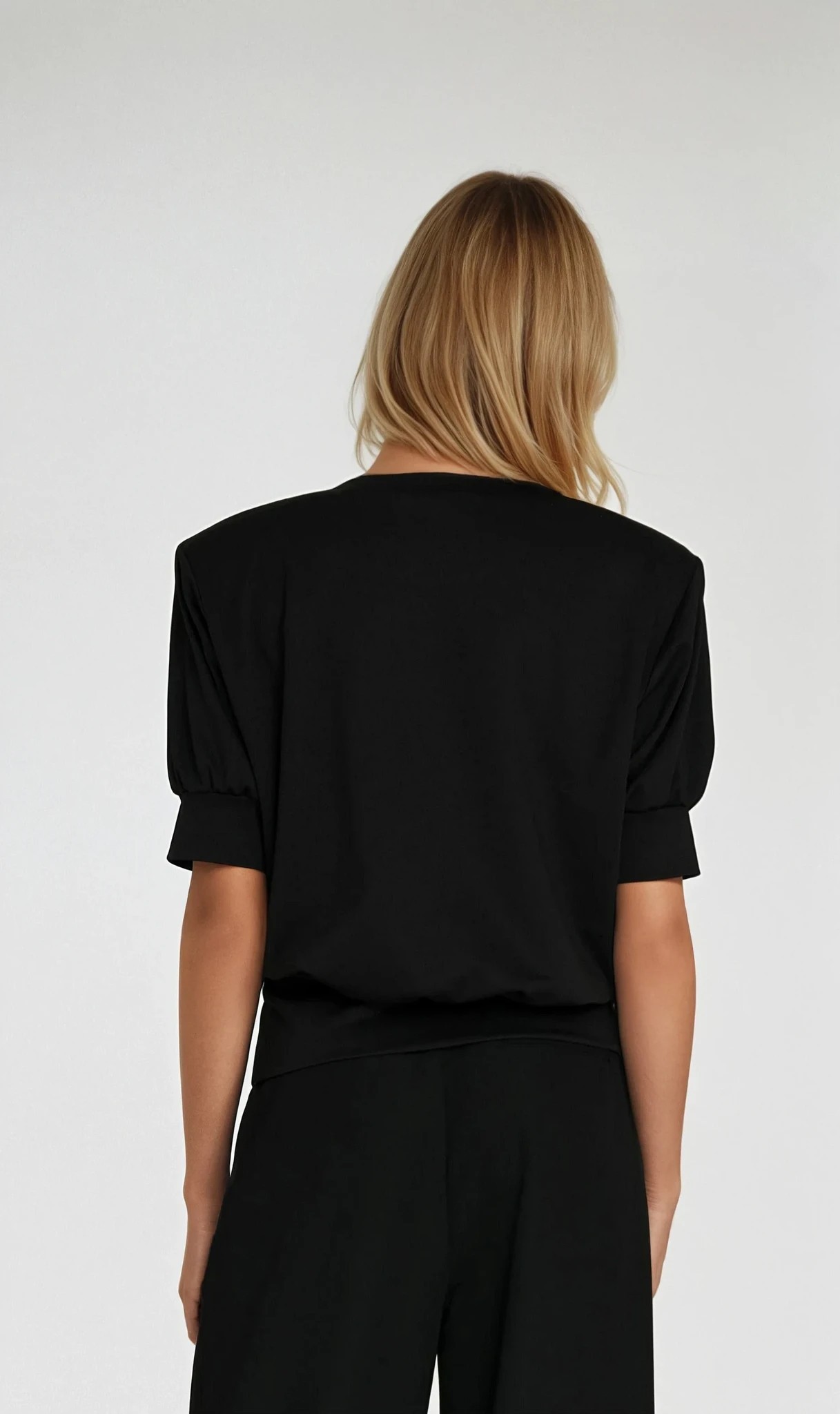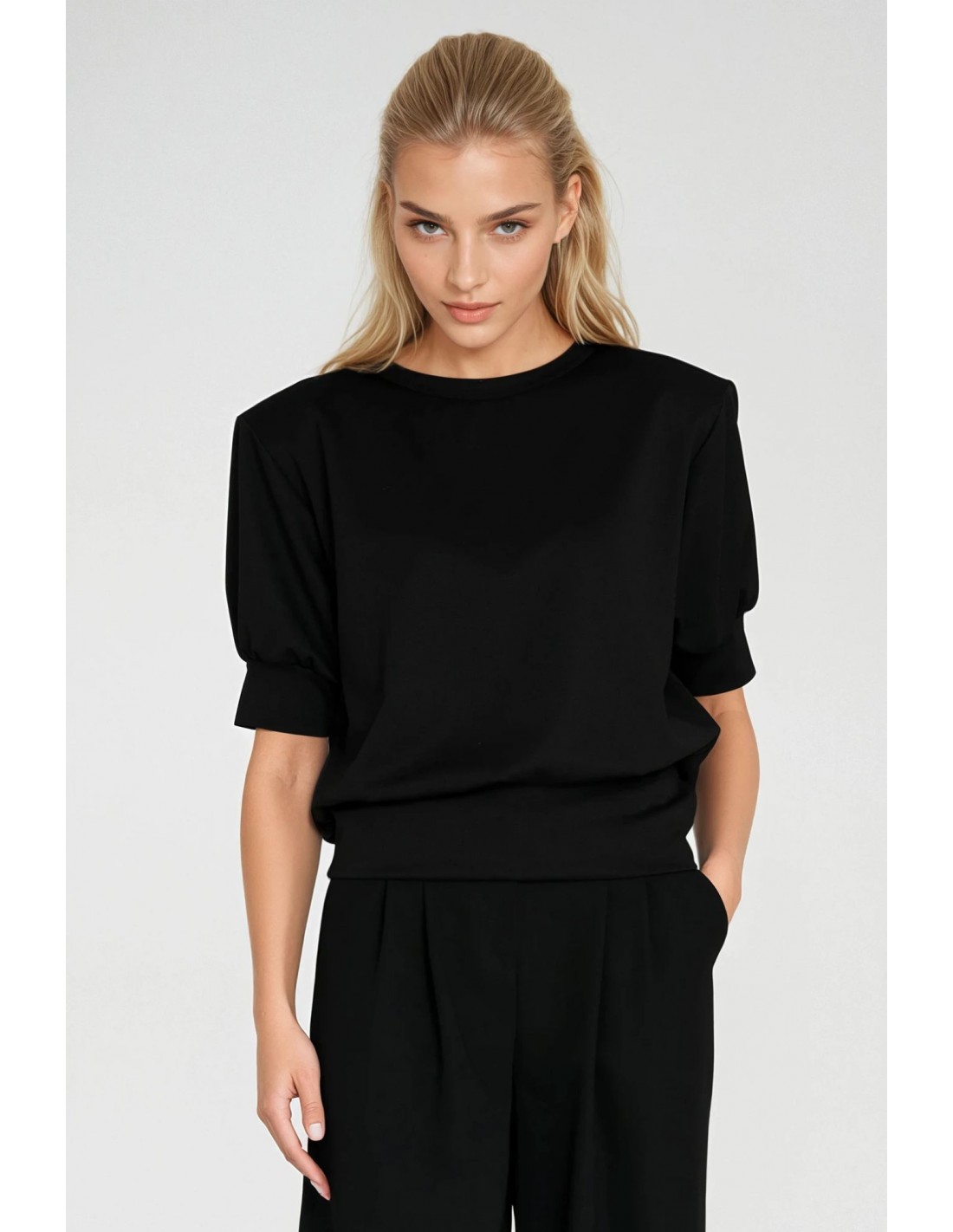Bluza z krótkim rękawem i okrągłym dekoltem - czarna