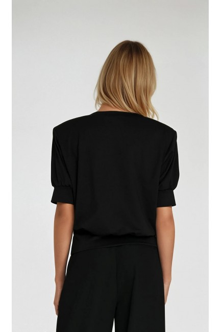 DM1418 Bluza z krótkim rękawem i okrągłym dekoltem - czarna