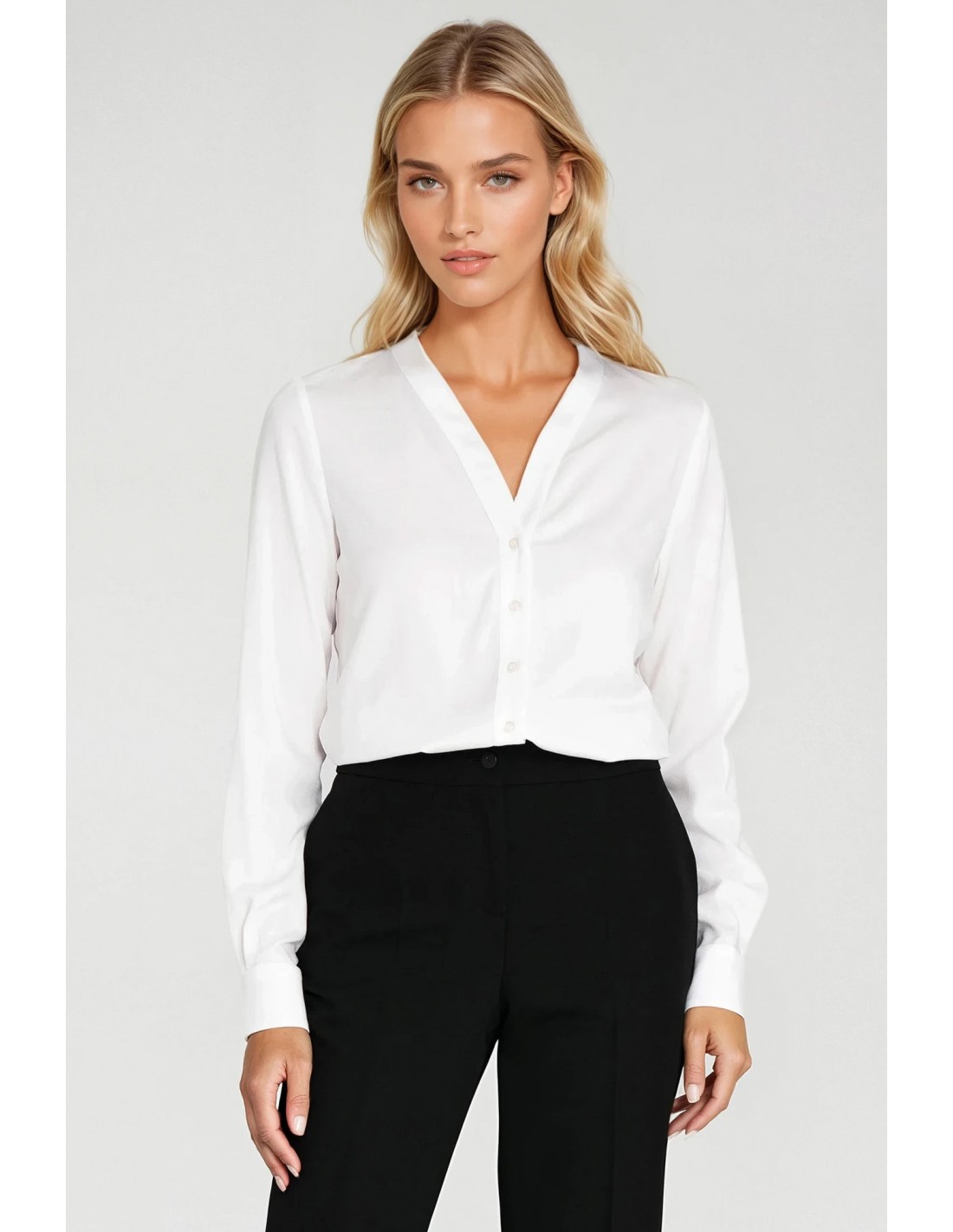 DM1420 Wiskozowa bluzka o kroju regular z dekoltem V - ecru