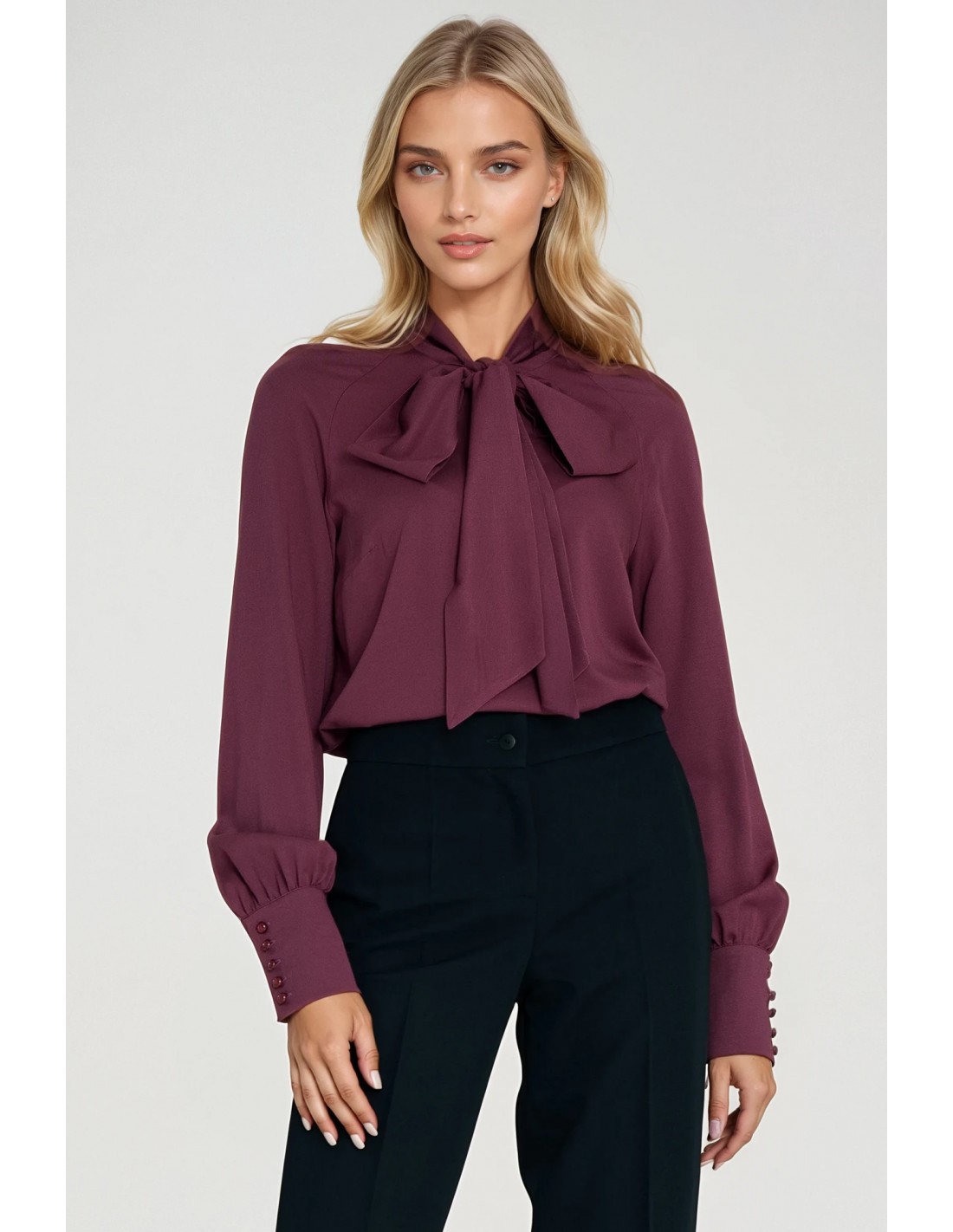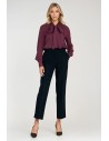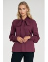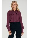 DM1422 Wiskozowa bluzka z szarfą w dekolcie - śliwkowa