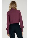Wiskozowa bluzka z szarfą w dekolcie - śliwkowa