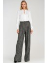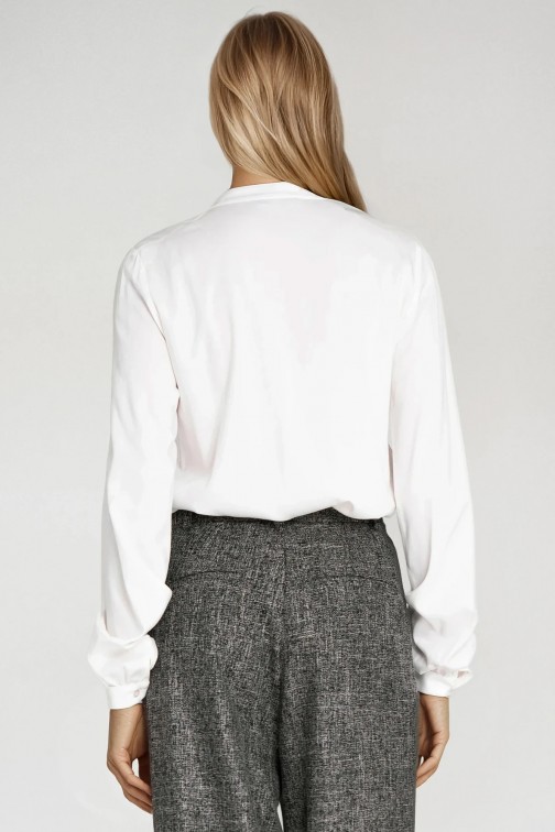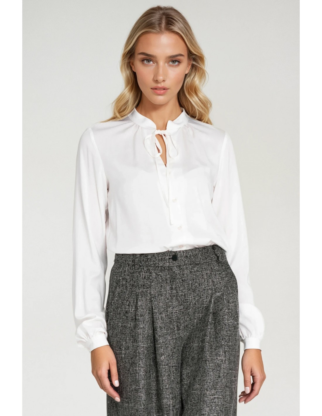 DM1423 Bluzka damska zapinana na guziki z wiązaniem w dekolcie - ecru