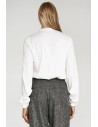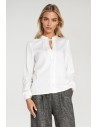 Bluzka damska zapinana na guziki z wiązaniem w dekolcie - ecru
