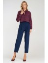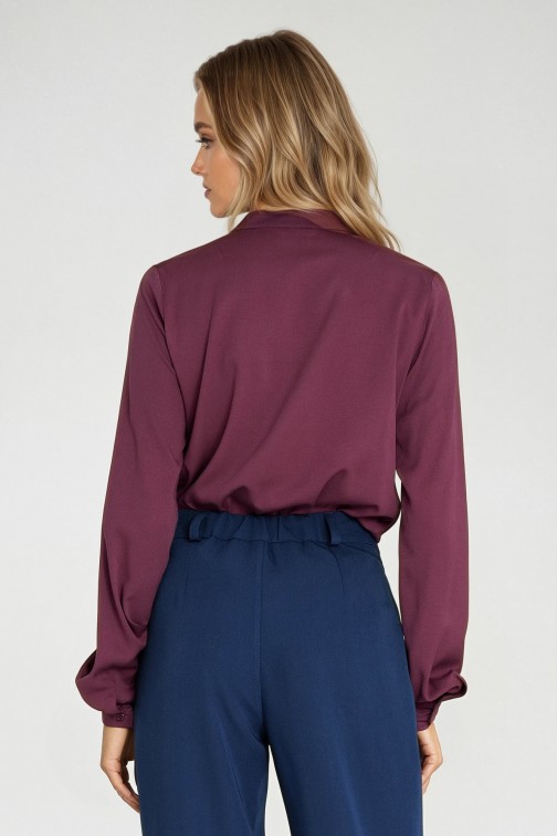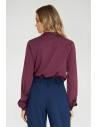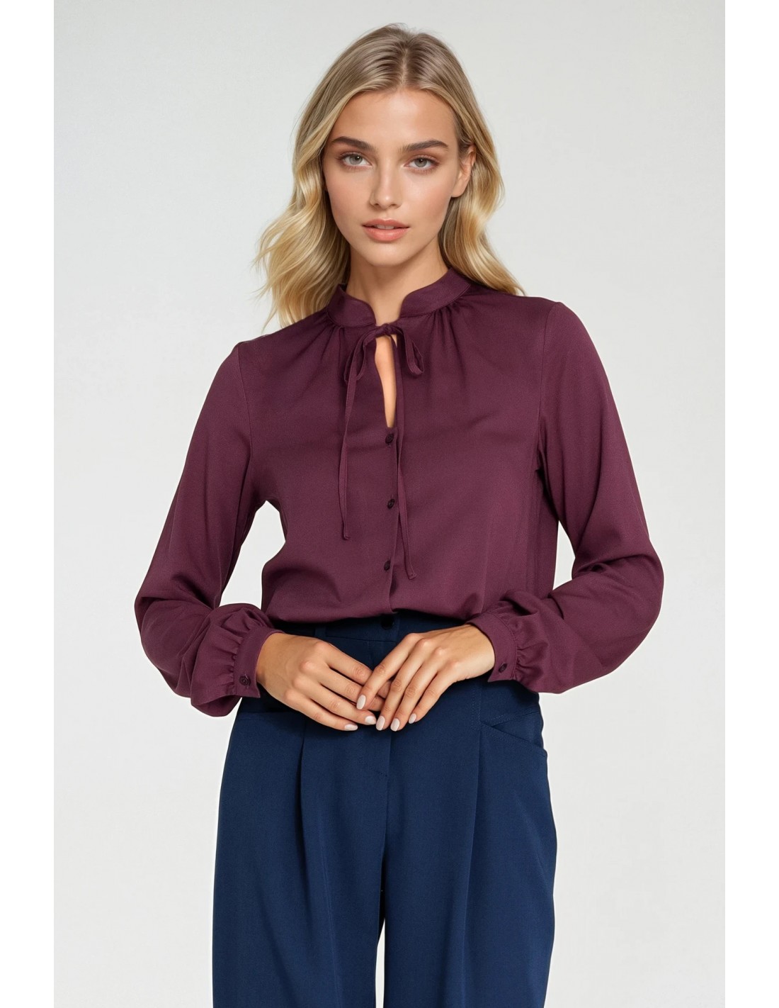 DM1423 Bluzka damska zapinana na guziki z wiązaniem w dekolcie - śliwkowa