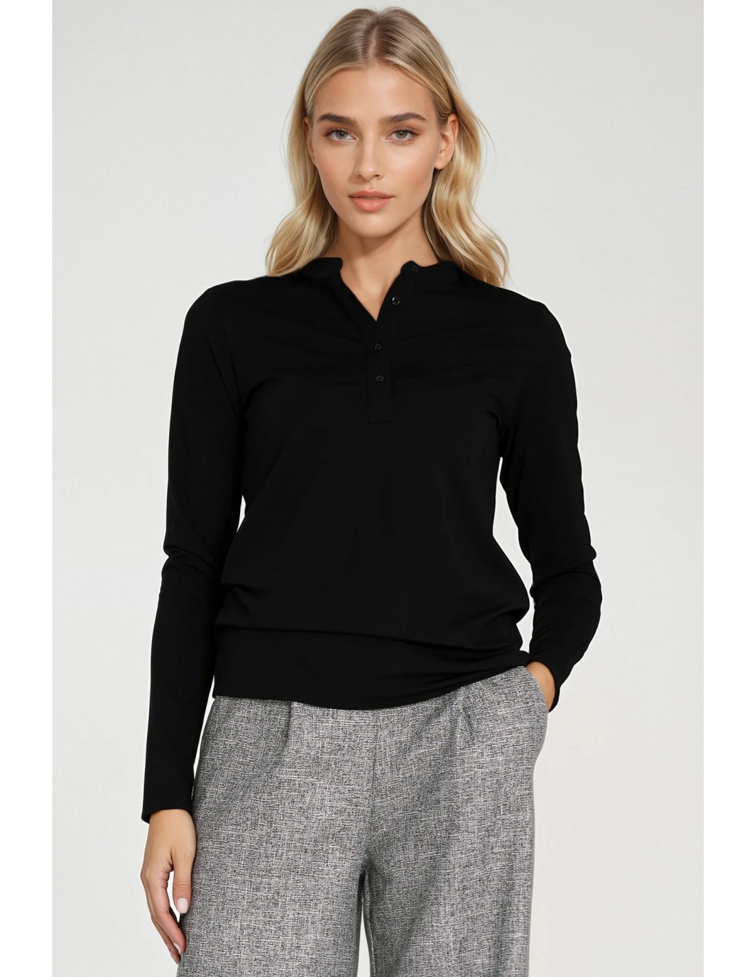 DM1425 Klasyczna bluzka damska ze stójką - czarna