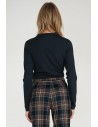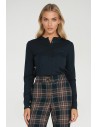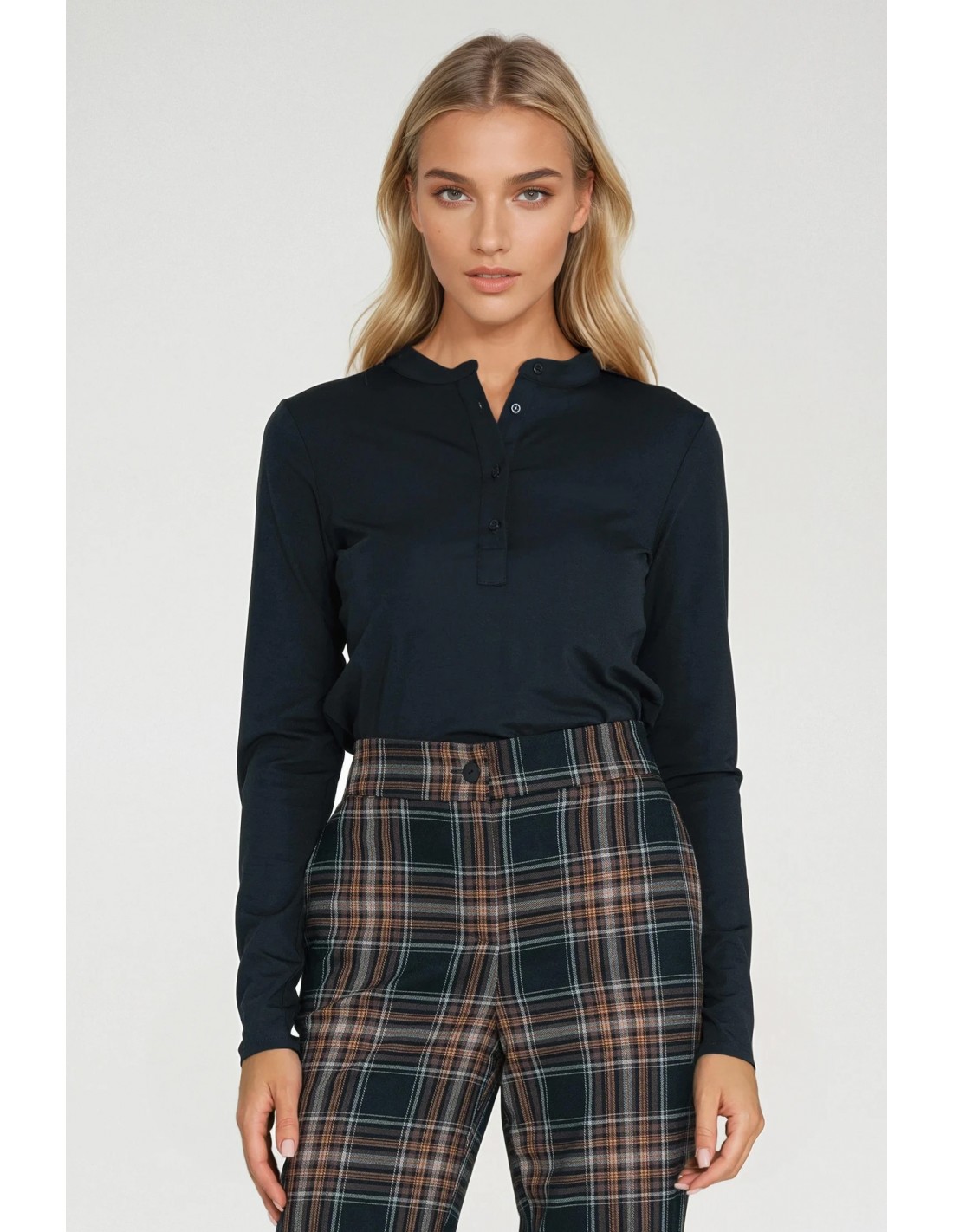 DM1425 Klasyczna bluzka damska ze stójką - granatowa