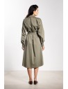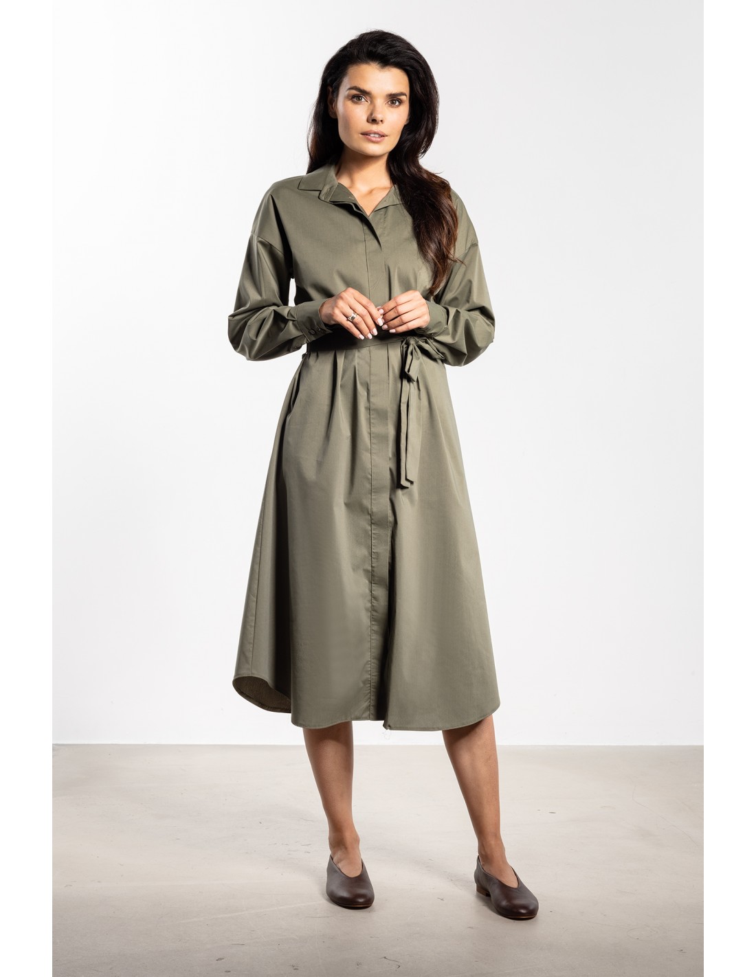 Sukienka midi z wiązaniem w talii i kołnierzykiem - szałwiowa