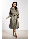 DM1431 Sukienka midi z wiązaniem w talii i kołnierzykiem - szałwiowa