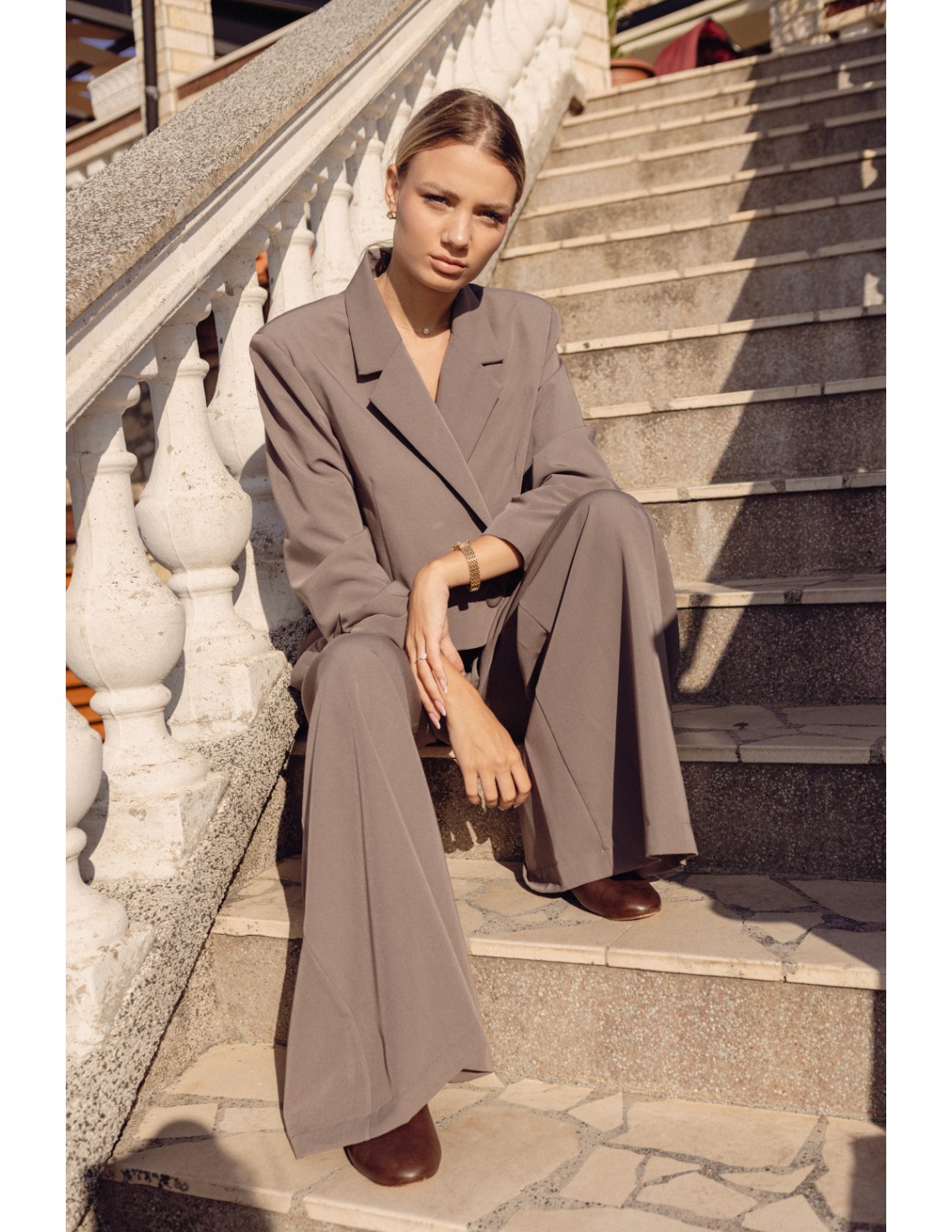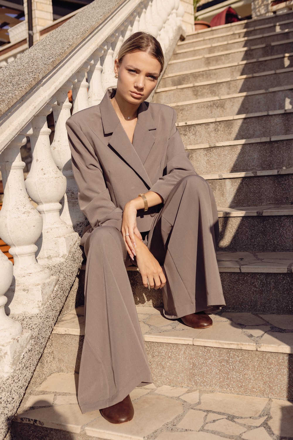 Eleganckie spodnie damskie z szeroką nogawką i wysokim stanem łączą wygodę z elegancją, tworząc uniwersalną propozycję na różne okazje. Wysoki stan podkreśla talię i optycznie wydłuża sylwetkę, a szerokie nogawki nadają lekkości i nowoczesnego charakteru. Model sprawdzi się zarówno w codziennych, jak i bardziej formalnych stylizacjach. Świetnie komponuje się z marynarką, koszulą czy swetrem, a praktyczne kieszenie boczne zwiększają funkcjonalność, pozwalając zachować wygodę w każdej sytuacji.