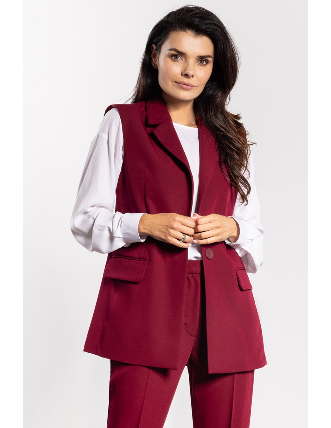 DM1440 Elegancka kamizelka zapinana na guzik - bordowa