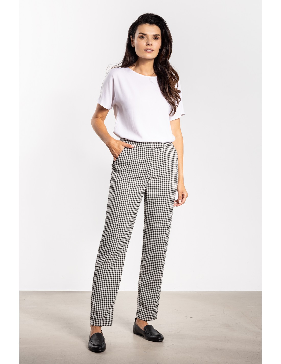 DM1443 Eleganckie spodnie cygaretki w kratkę - czarno-białe