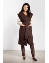 Długa damska kamizelka z flauszu to propozycja idealna na chłodniejsze dni jesieni. Miękki materiał gwarantuje komfort i trwałość, a minimalistyczny, prosty fason pozwala na tworzenie zarówno eleganckich, jak i casualowych stylizacji. Dołączony pasek umożliwia podkreślenie talii, a kamizelkę można również nosić luźno, tworząc swobodny, nowoczesny look. Duże kieszenie i rozcięcia po bokach zwiększają funkcjonalność i dodają modnego charakteru. Polska produkcja i staranne wykończenie zapewniają wysoką jakość.