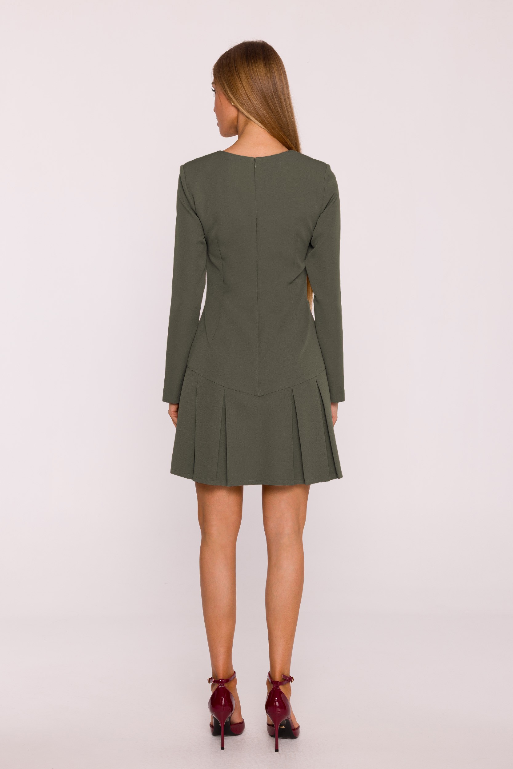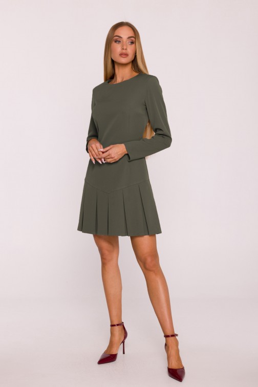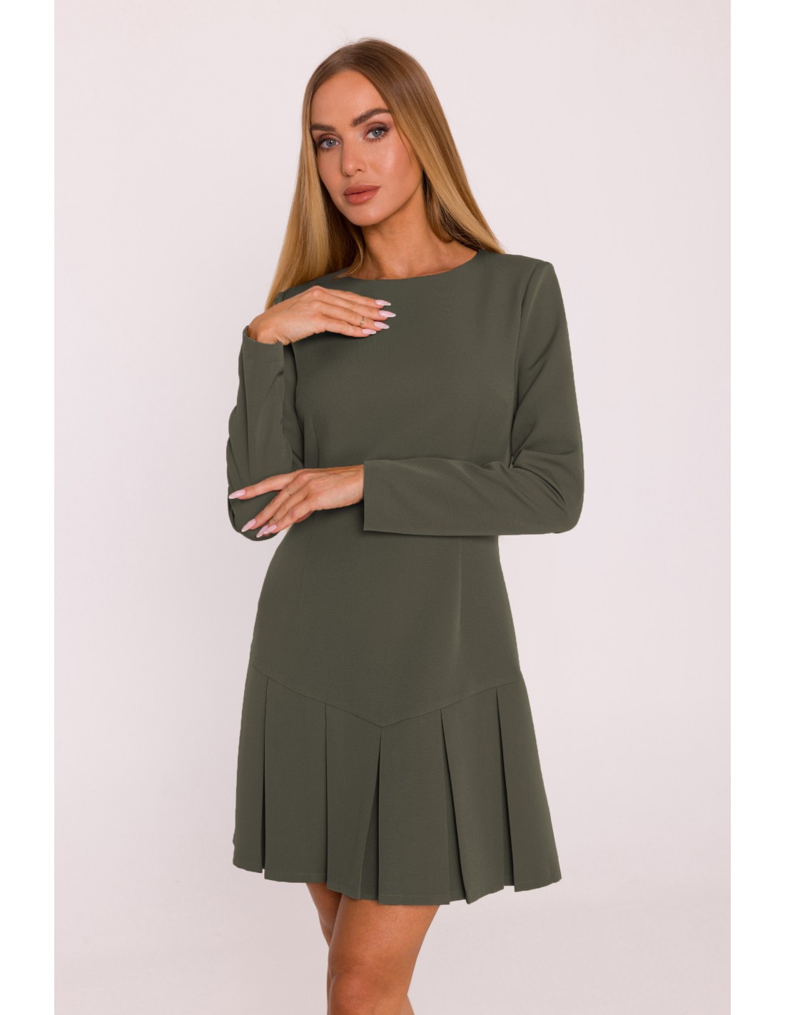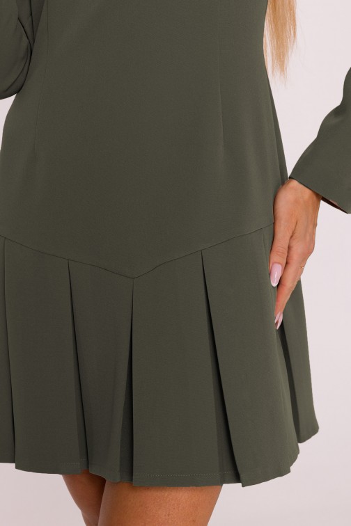 DM1453 Elegancka sukienka mini z kontrafałdami - khaki