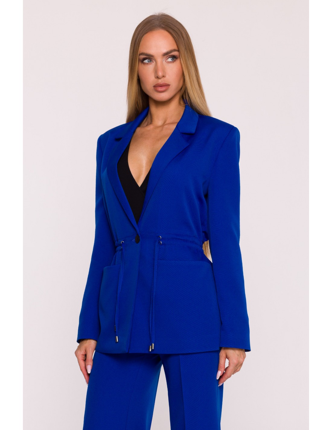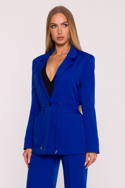 DM1454 Marynarka damska marszczona w talii - chabrowa