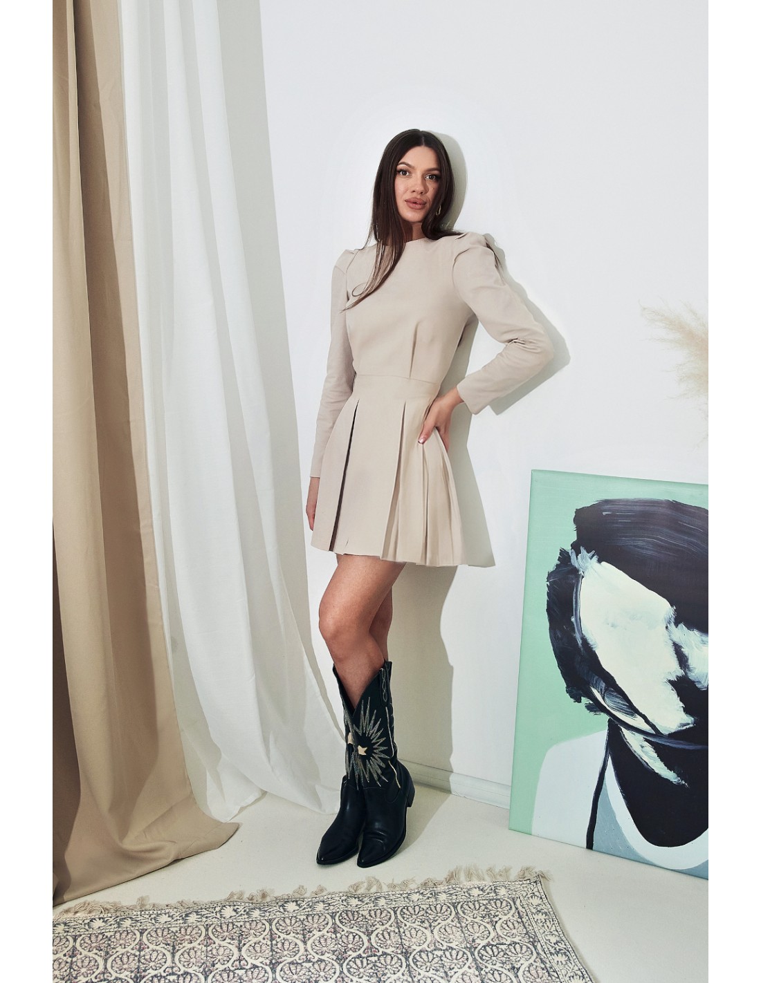 Sukienka rozkloszowana z kontrafałdami - beżowa