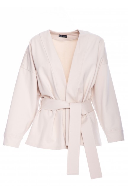 Luźna narzutka blezerowa z paskiem w talii - piaskowa