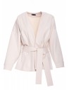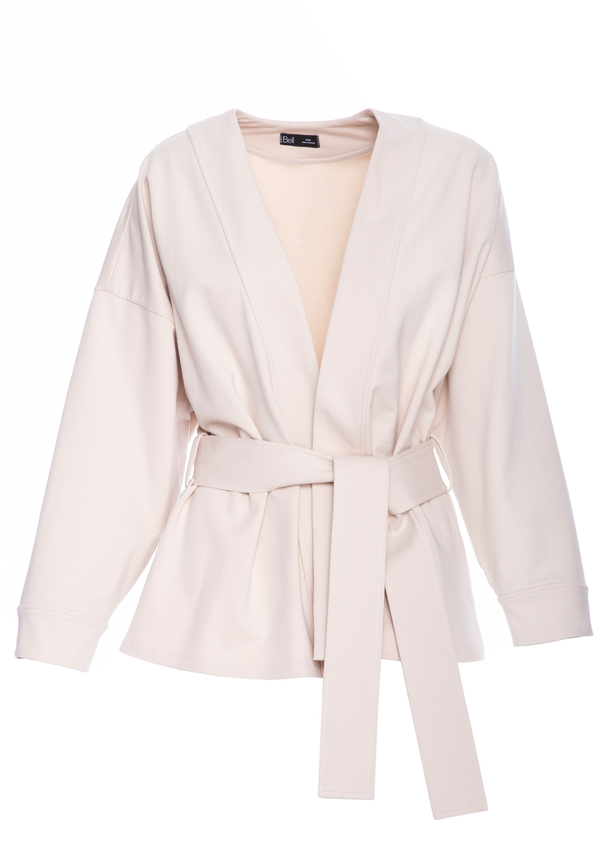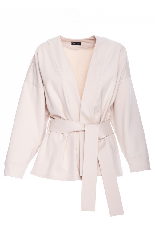 DM1476 Luźna narzutka blezerowa z paskiem w talii - piaskowa