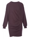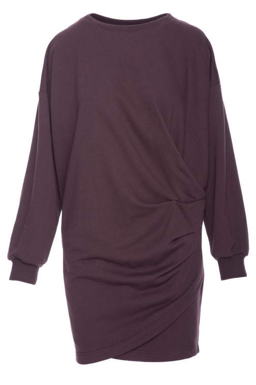 Dzianinowa sukienka o luźnym kroju z zakładkami - gorzka czekolada