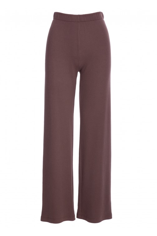 DM1479 Spodnie casual z dzianiny prążkowanej - brązowe