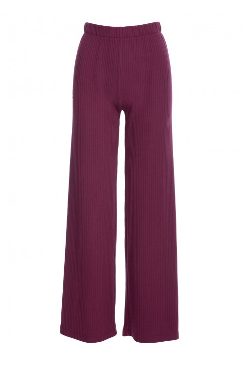 DM1479 Spodnie casual z dzianiny prążkowanej - śliwkowe