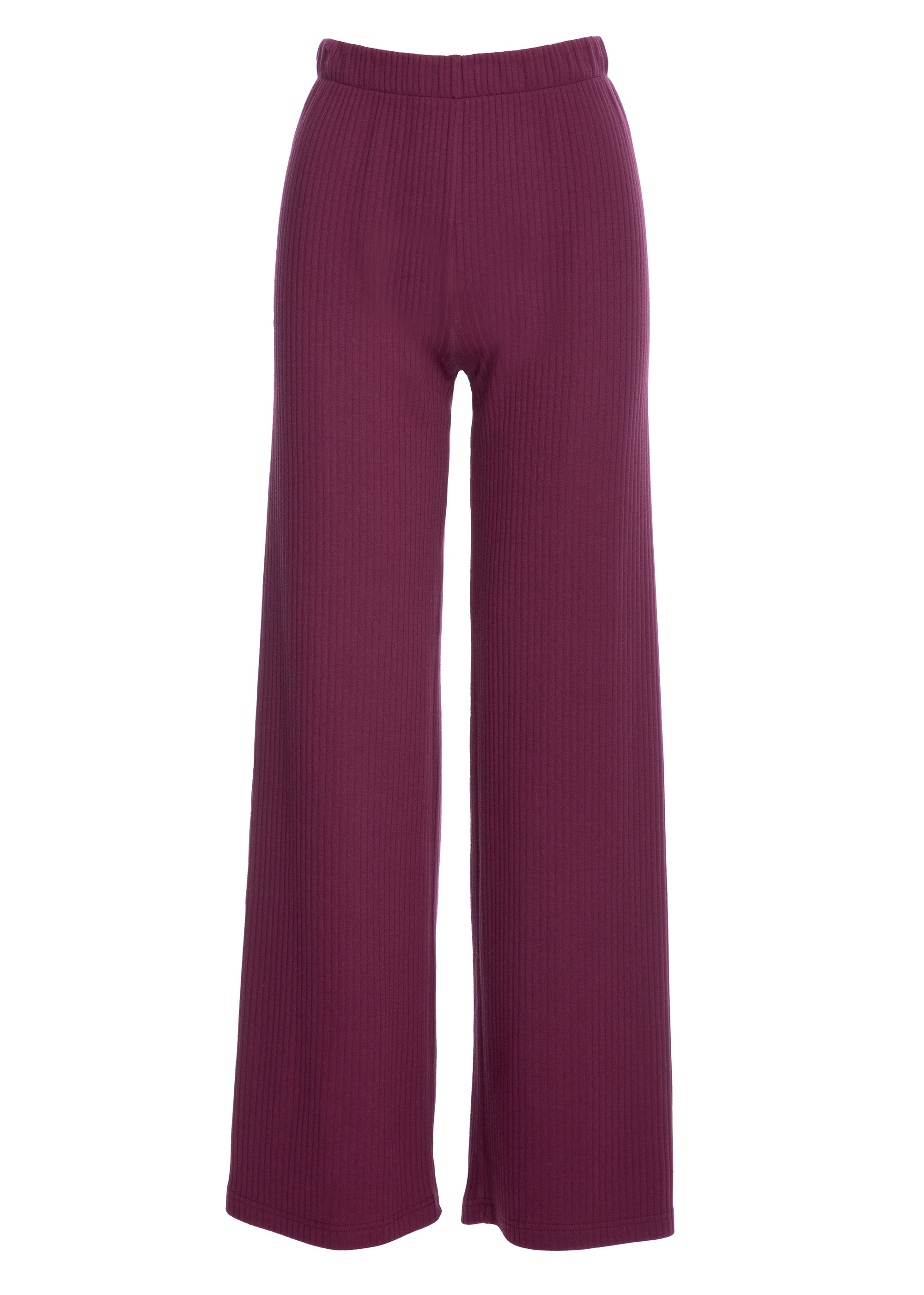 Spodnie casual z dzianiny prążkowanej - śliwkowe