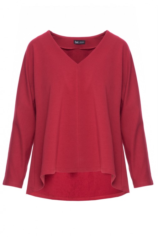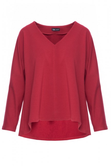 DM1483 Bluzka dzianinowa z dekoltem w serek - bordowa